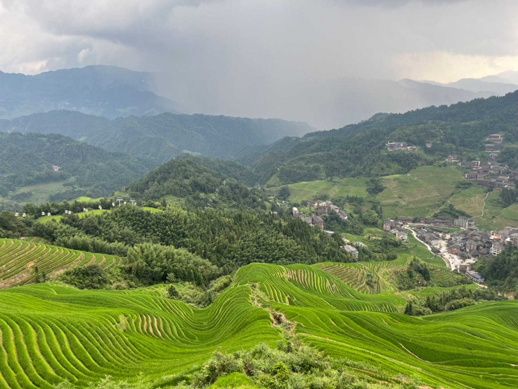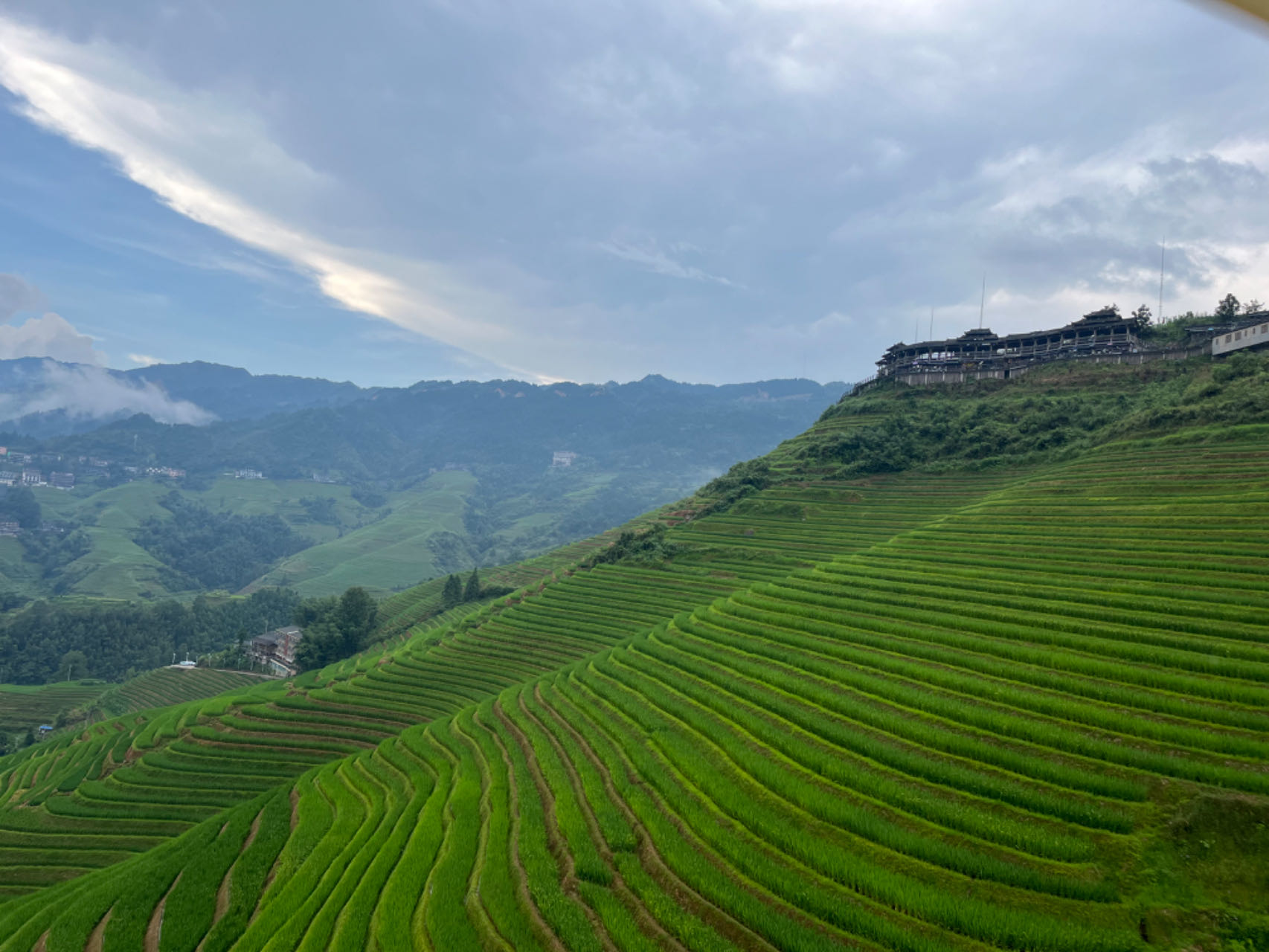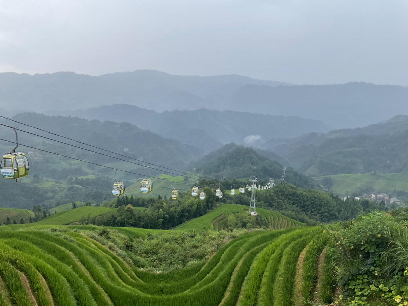 大寨村位于广西东北部的龙胜各族自治县,处于龙脊梯田景区核心区。这里,一层层梯田环抱于山间,一棵棵树木直入云天,一座座吊脚楼点缀其间,在缆车上体验更是美不胜收。