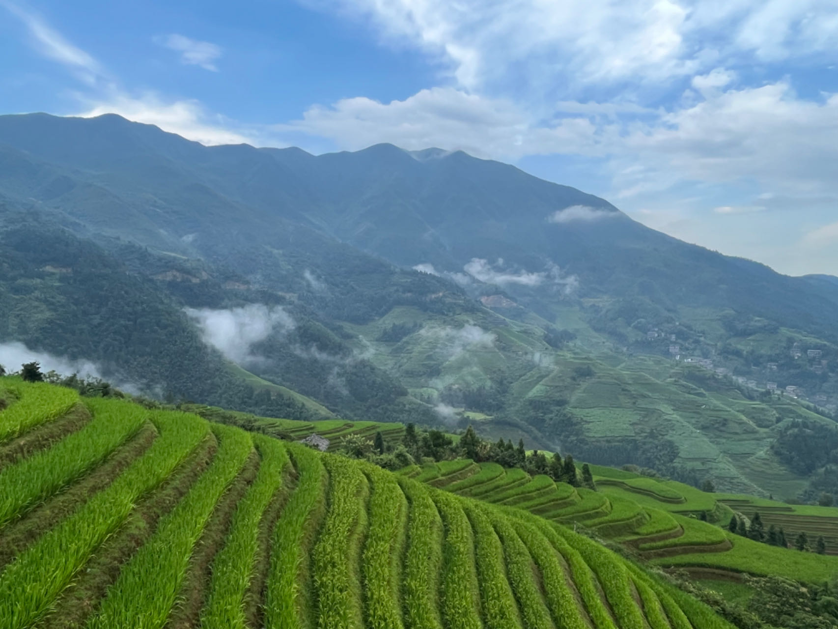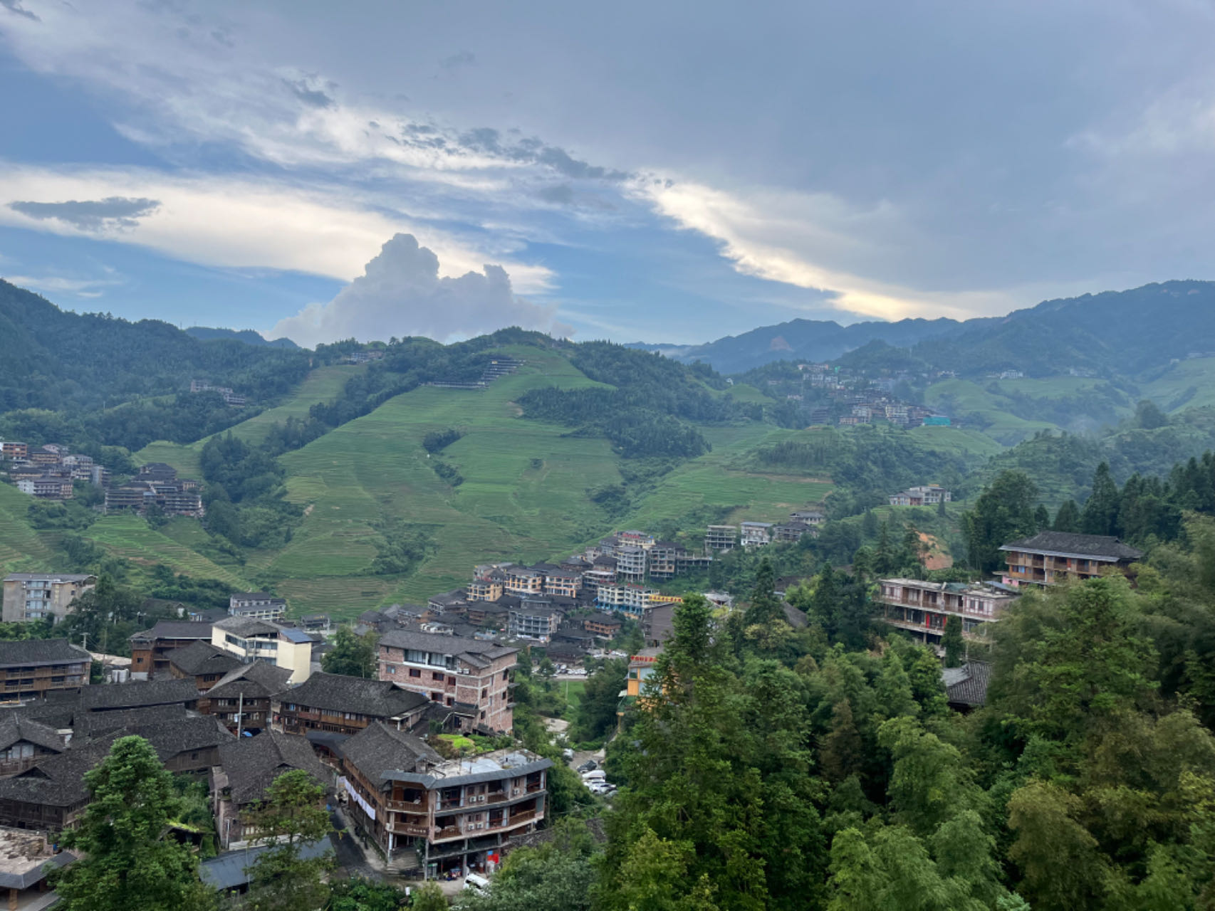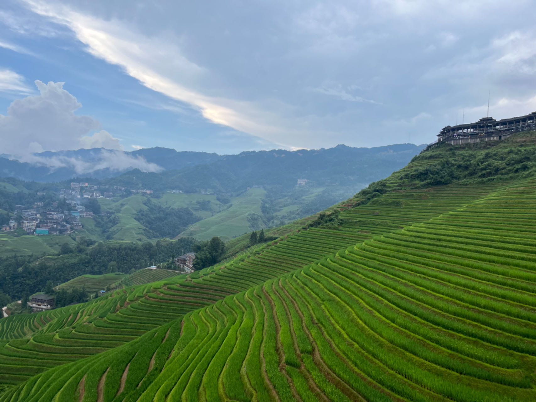 大寨村位于广西东北部的龙胜各族自治县,处于龙脊梯田景区核心区。这里,一层层梯田环抱于山间,一棵棵树木直入云天,一座座吊脚楼点缀其间,在缆车上体验更是美不胜收。