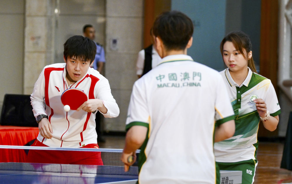 除座谈问答外,中国艺术体操队的“金花”们还在现场进行了技艺示范,并与学生进行艺术体操教学互动;巴黎奥运会乒乓球混双冠军王楚钦、孙颖莎,男单冠军樊振东,女单冠军陈梦也与澳门乒乓球运动员进行了混编对战。
