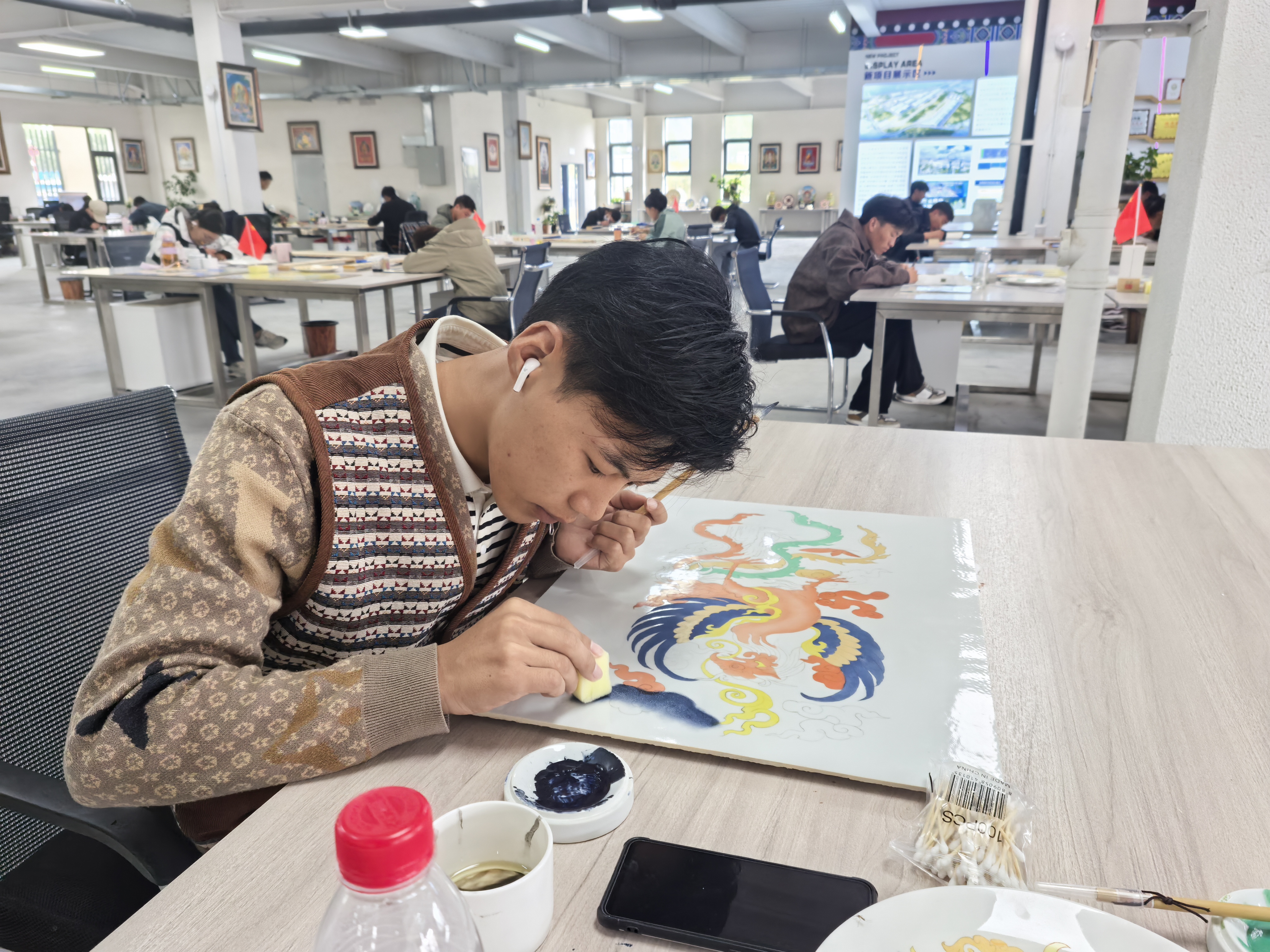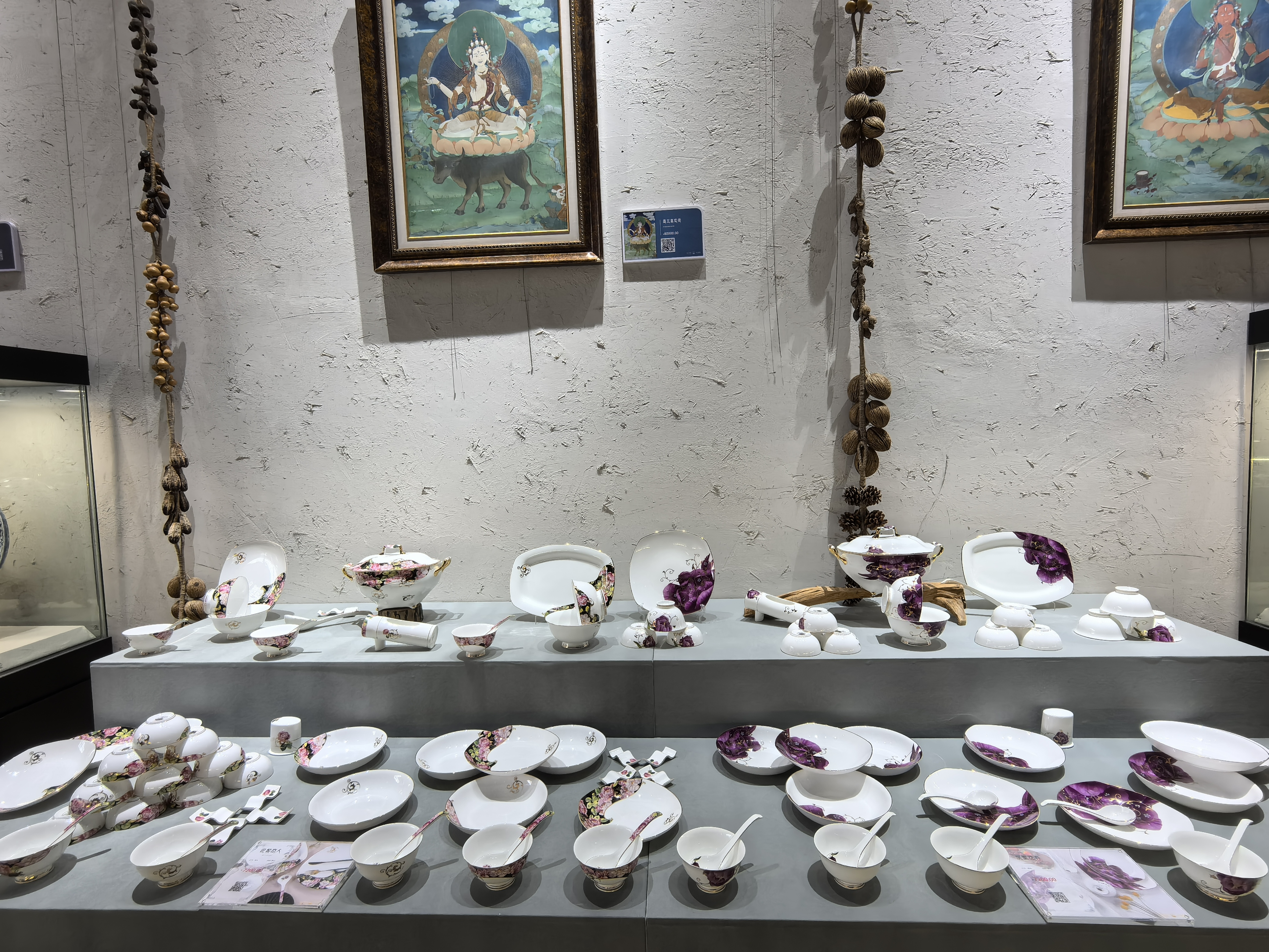 “我们充分结合西藏黑陶、土陶等传统工艺,创新西藏特色陶制品,并在中华陶瓷工艺的基础上,创新研制出了牦牛骨质瓷器。一些由牦牛骨质瓷制作的陶瓷唐卡、陶瓷壁画作品,还采用了手绘创作的方式。”莲华之宝公司副总裁、文化艺术总监李初初介绍说。