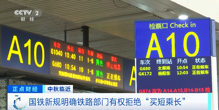 广东台记者 郑泽燕:近几年的“五一”“国庆”假期,由于大量旅客“买短乘长”,导致车辆超载,后续正常购票的旅客没有办法上车,甚至导致列车没有办法正常运行的情况,也是屡屡发生。