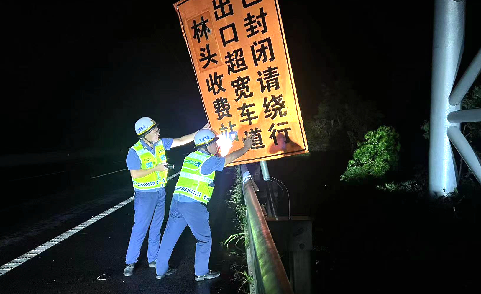 9月7日凌晨2时,见风雨稍小,渝湛、湛徐高速、徐闻港支线高速迅速组织6个抢险班组共304名党员先锋队、湛道突击队成员及抢险人员,利用机械车、砍刀等逐一将被强风吹倒和影响通行的树木树枝、标识标牌进行清除。茂湛、包茂高速共投入抢险人员232人,机械抓机、拖车等大型施工车辆40辆,对全线路段进行连夜清障,及时清除道路安全隐患。