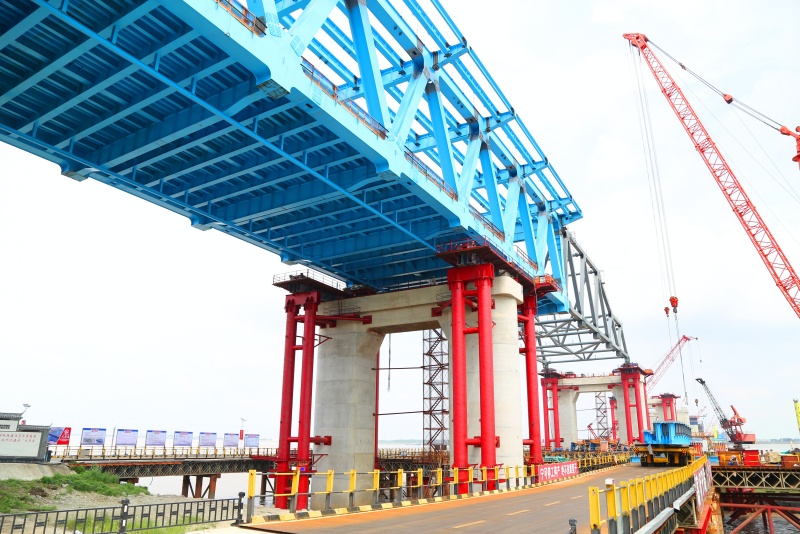 9月6日,由中铁大桥局承建的沪渝蓉高铁V标崇启公铁长江大桥非通航孔桥首个主跨112米钢梁顶推顺利到位。目前,已完成56米、42米、112米三次钢梁顶推任务,累计顶推钢梁210米,约5400吨。