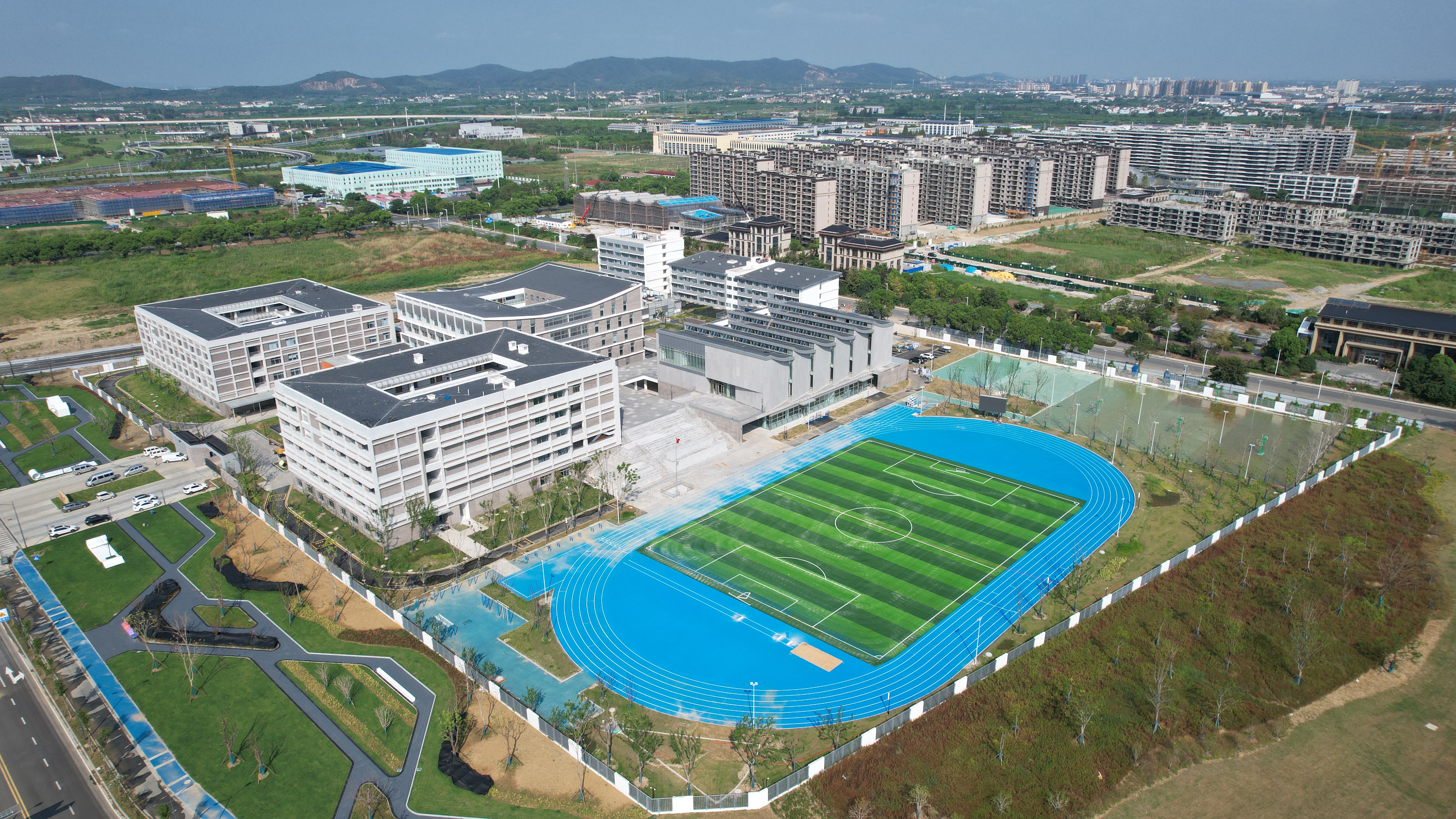 走进校园,庭院式聚集建筑群与现代化体育场的“古今融合”营造出独具特色的文化厚重感,既能满足现代化教学要求,又为学生们提供了集生态、科技、人文一体的“高颜值”校园环境。