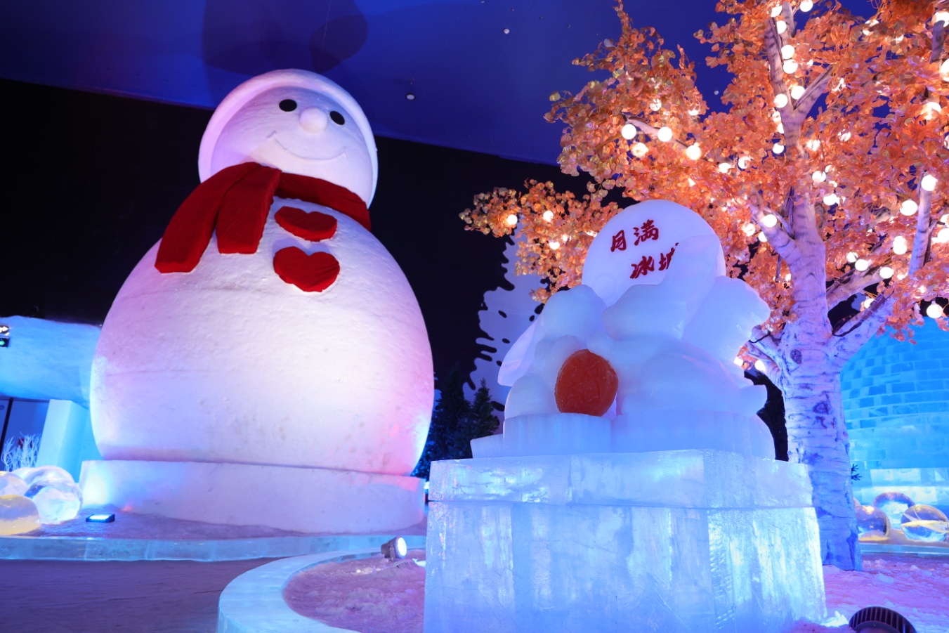 “玉兔望月”冰雕落成以后,与梦幻冰雪馆内美轮美奂、流光溢彩的冰雪景观完美融合、相得益彰,为这座吉尼斯世界纪录认证的“最大的室内冰雪主题乐园”增添了节日氛围。