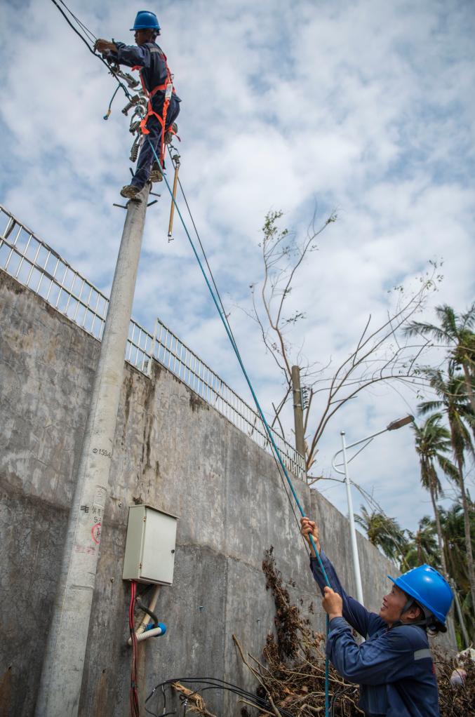 十余天前,超强台风“摩羯”在这里登陆。目前,抢修工作仍在继续。