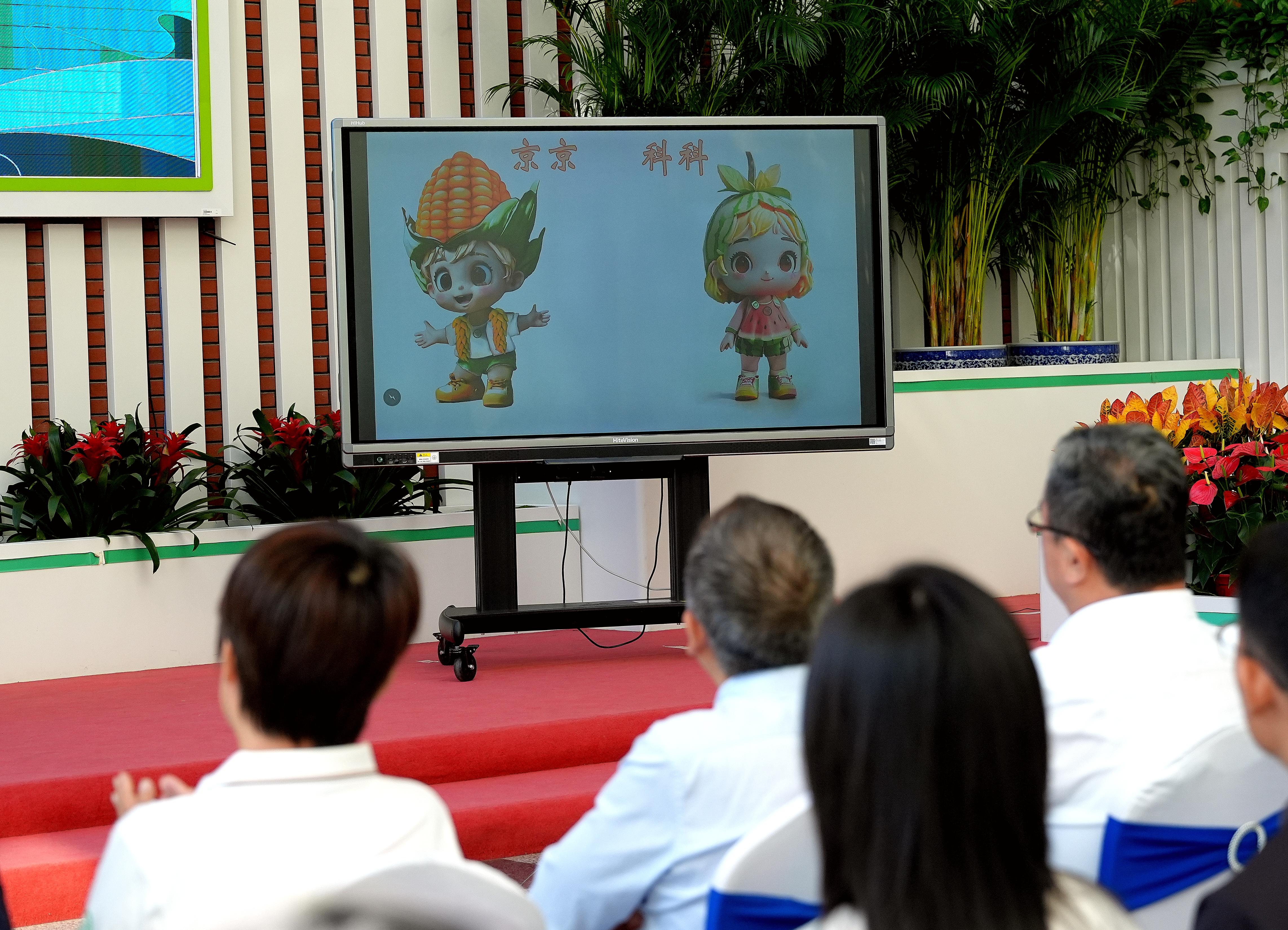 “大家在画面上看到的卡通形象,男孩叫‘京京’、女孩叫‘科科’,他/她们可以变换玉米、西瓜、白菜、草花、畜牧、水产等各种服饰。”伴随着北京市农林科学院办公室副主任杨春的介绍,该院IP形象——“京京”和“科科”首次对外发布。