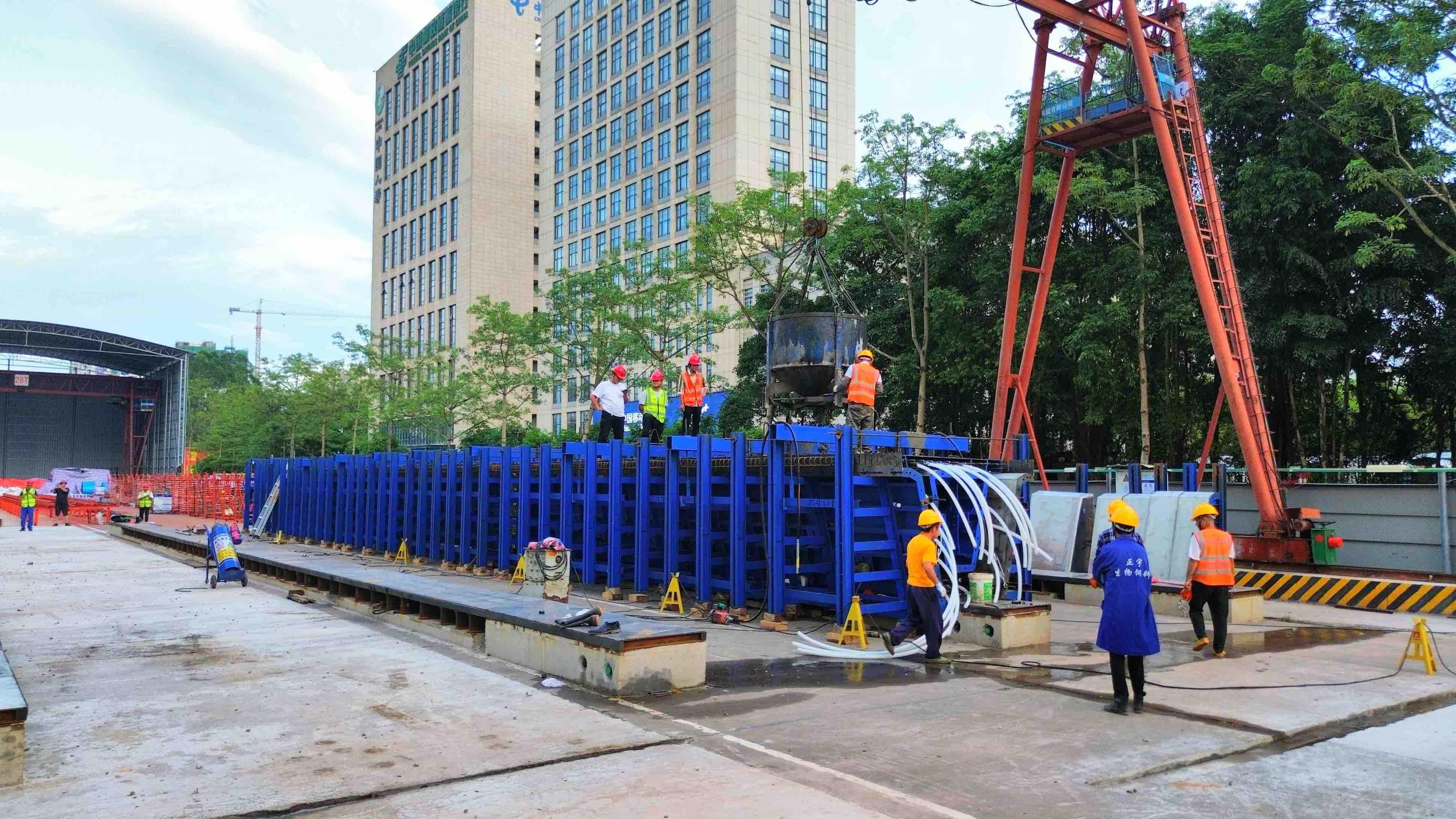 据介绍,为确保首榀预制梁高标准、高质量、高效完成,项目建设团队精心组织,提前制定专项施工方案并多次召开研讨会进行方案优化、开展现场交底明确安全质量控制要点、加强各工序质量管控提高施工标准,全面加强技术保障。同时,严格落实“首件制”“三检制”,从原材料的进场、验收,配合比的选定到钢筋加工、模板拼装、机械设备检修以及混凝土指标测定、浇筑速度、振捣等各个环节严格把关、步步监测、实时跟进,全过程管控。