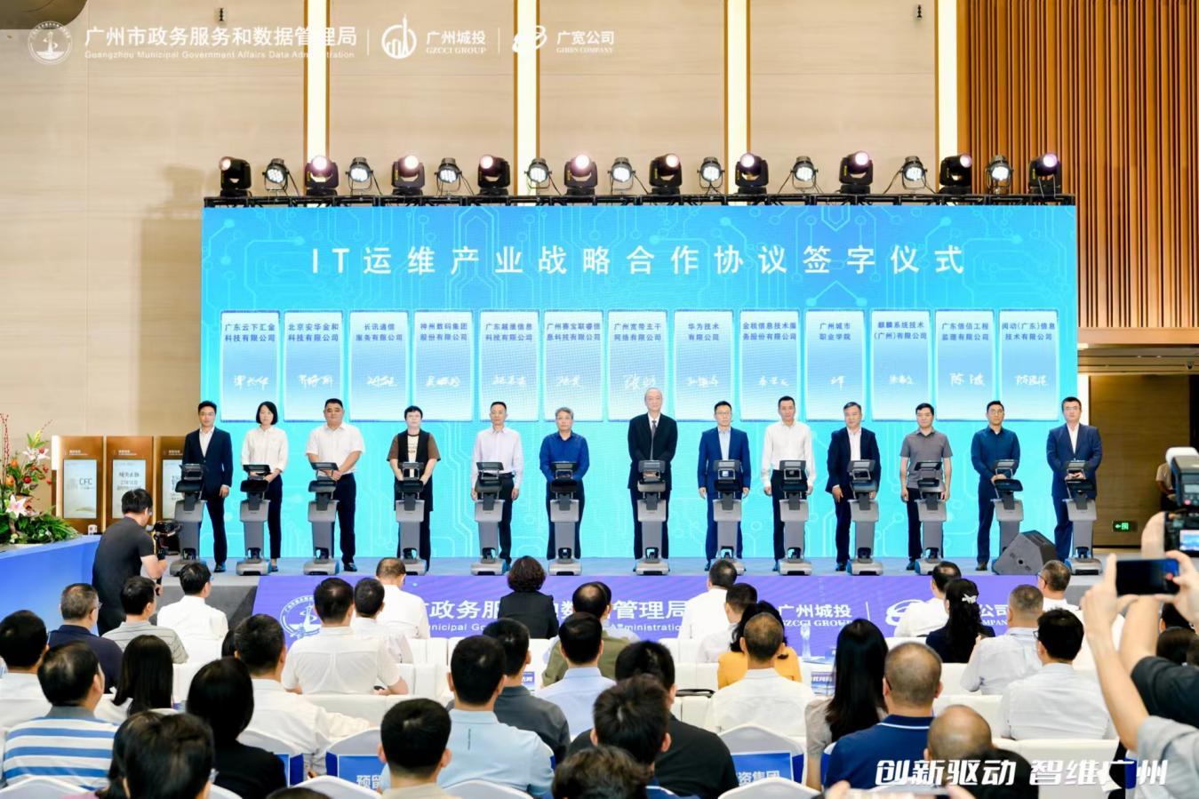 当天,广州市委、市政府以及市政协部门、高校科研院所以及行业代表近200人出席活动,13家企业和高职院校现场签订运维产业战略合作框架协议。广州市信息化运维服务协会第一届第一次会议和广州市首届IT运维论坛同步举办,华为、金税、越维、广州城市职业学院等百余家协会成员共商广州市运维行业发展未来。