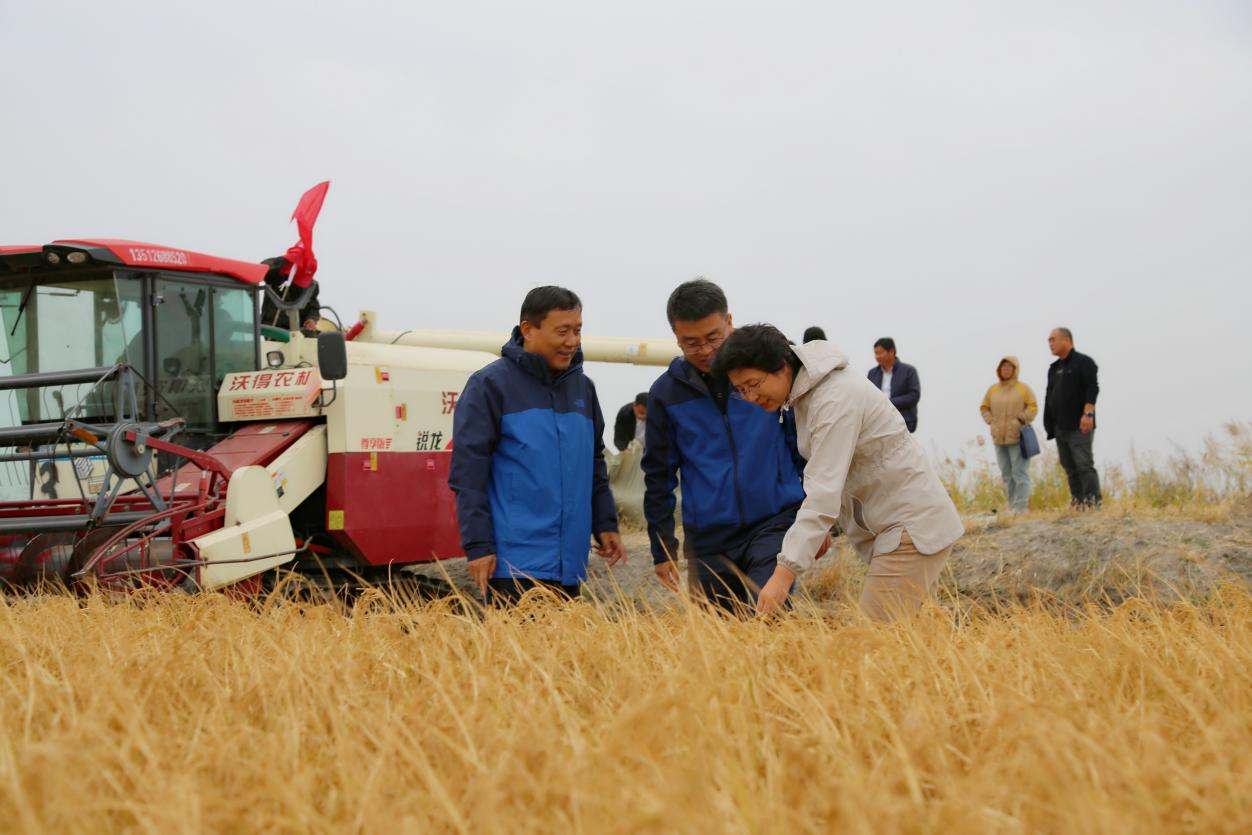 9月24日,由国家耐盐碱水稻技术创新中心、国家耐盐碱水稻技术创新中心东北中心(以下简称东北中心)、黑龙江省农业科学院、三亚市耐盐碱水稻产业联合会共同举办的水稻品种及物化产品试验示范测产现场观摩会在黑龙江省大庆市举行。