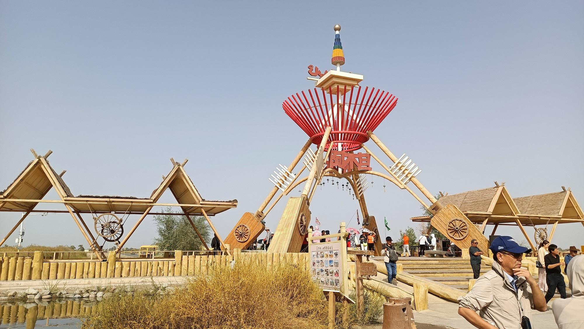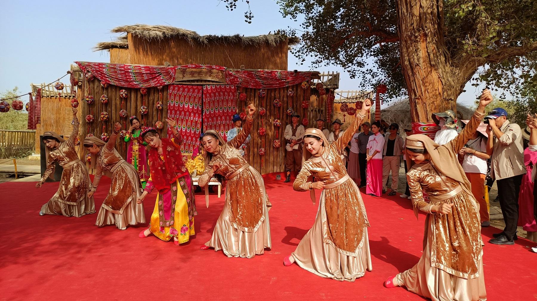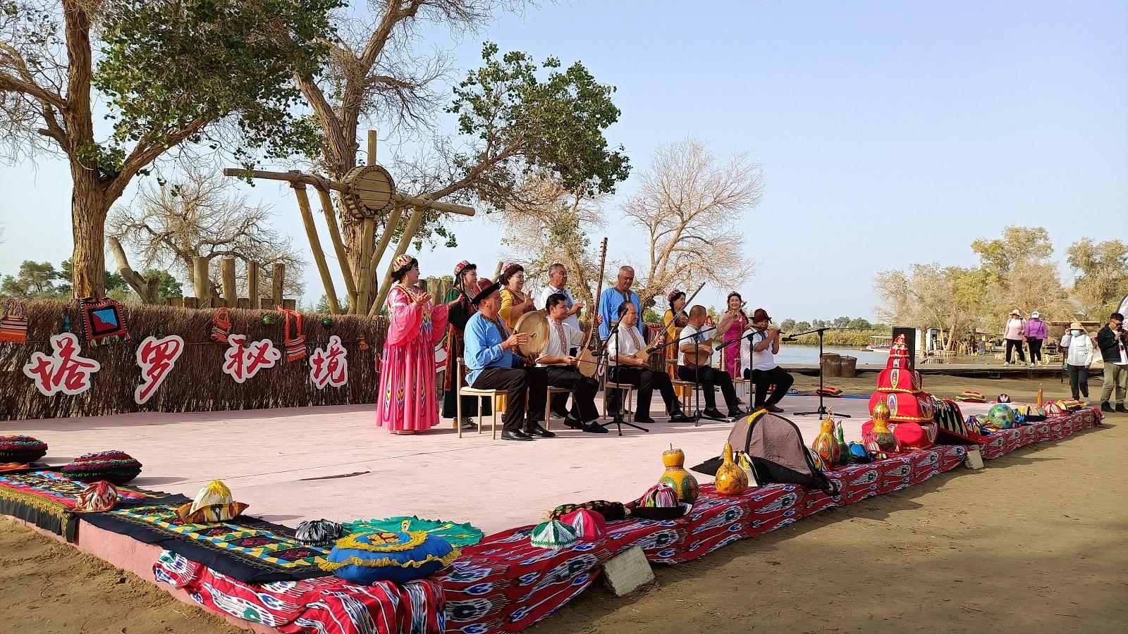 9月21日,记者跟随“铸牢共同体 中华一家亲”主题采访活动来到新疆尉犁县罗布人村寨景区,世界最大的原始胡杨林保护区、中国最大的沙漠塔克拉玛干沙漠、最长的内陆河塔里木河交汇于此,形成独特美景,使得游客流连忘返,景区也成为了网红打卡地。