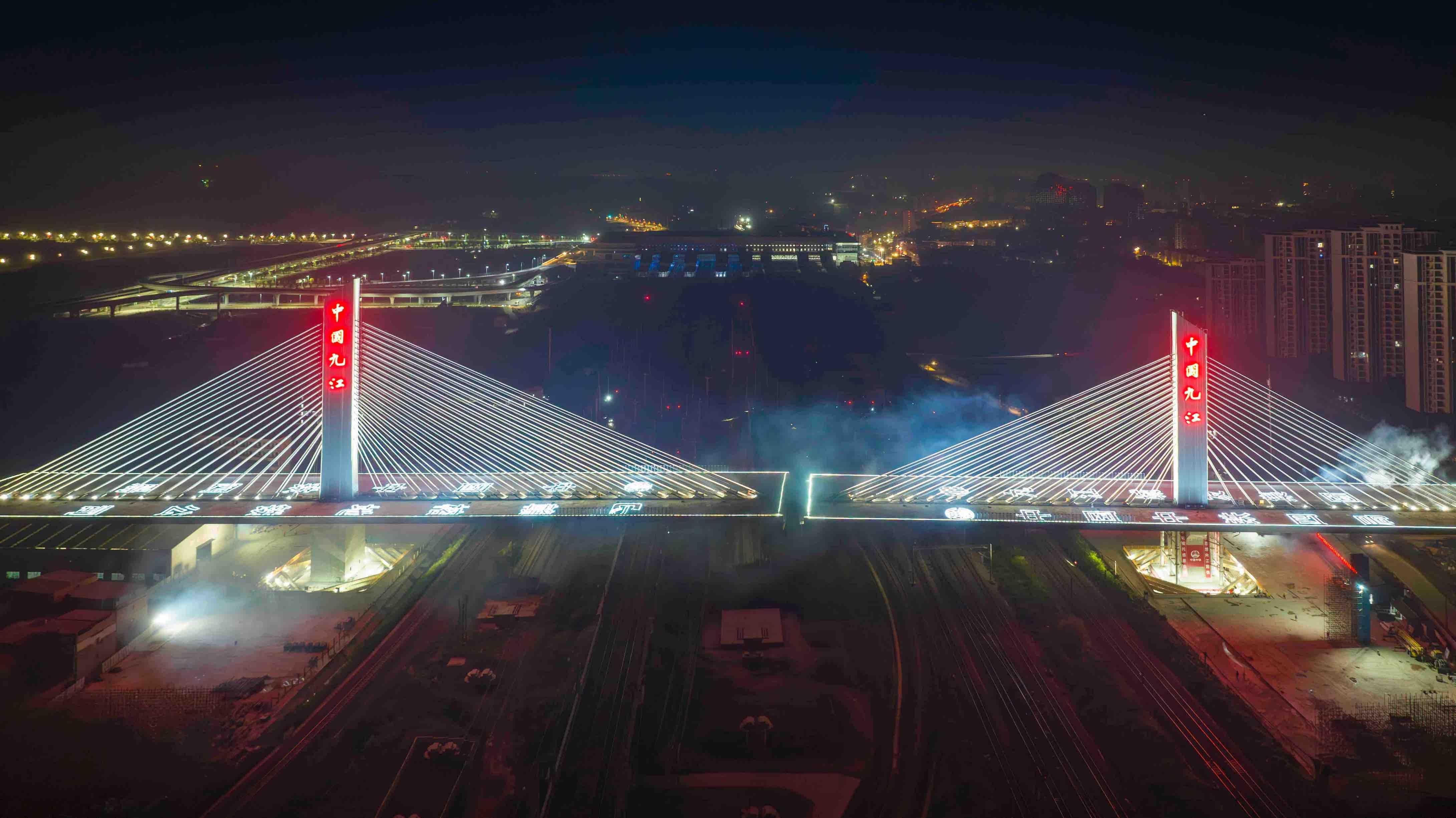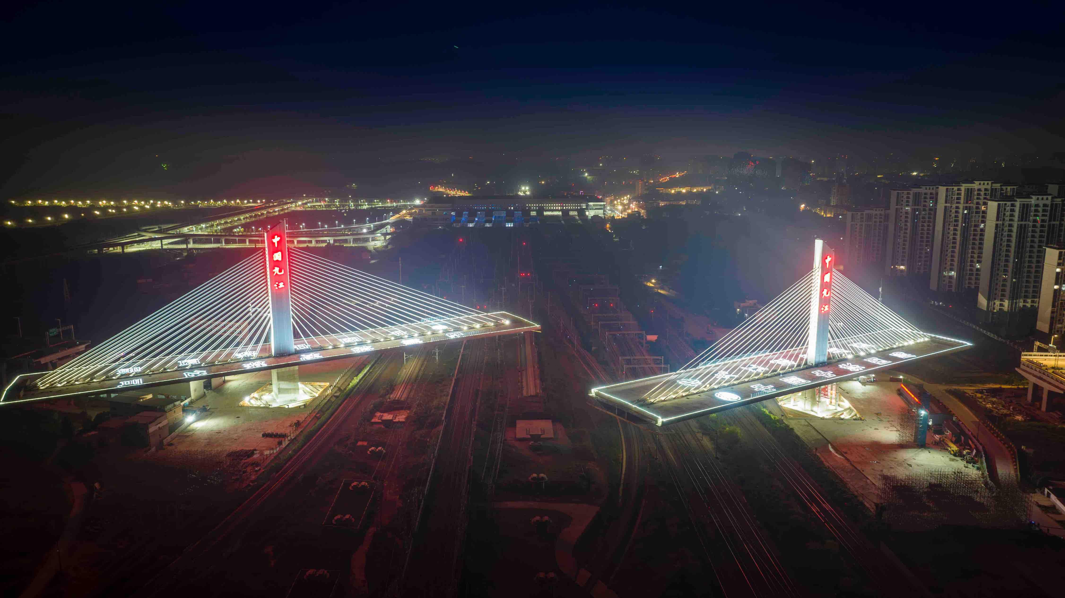 九江快速路跨庐山站转体斜拉桥是九江快速路一期工程全线控制性工程,由九江市城发集团投资建设、中国铁路南昌局集团赣榕地铁公司代建、中铁四局集团承建,桥长465米,宽42米,采用国际先进的子、母塔双转体法建设,母塔最高达87米。