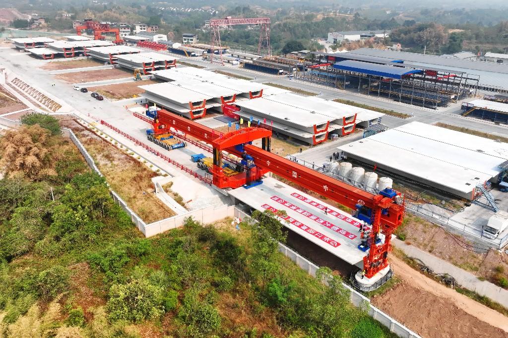 9月26日10时6分,随着首榀长32.6米、重达约697吨的箱梁稳稳落在成渝中线高铁小安溪双线特大桥65-64号墩之间,标志着成渝中线高铁重庆段箱梁架设施工正式启动。