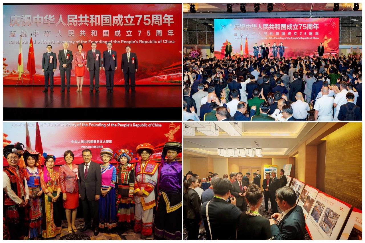 9月26日,驻日本大使吴江浩偕夫人丁玥在东京新大谷饭店举行庆祝中华人民共和国成立75周年招待会。日本前首相鸠山由纪夫,公明党党首山口那津男、日本共产党议长志位和夫、社民党党首福岛瑞穗、自民党总务会长森山裕,众议院副议长海江田万里,日中友好议员联盟事务局长小渊优子等政要,日中经济协会会长进藤孝生、日中协会会长野田毅等友好团体代表,110多国驻日使节及日本各界人士、在日华侨华人、中资机构、留学生代表等约1600人出席。