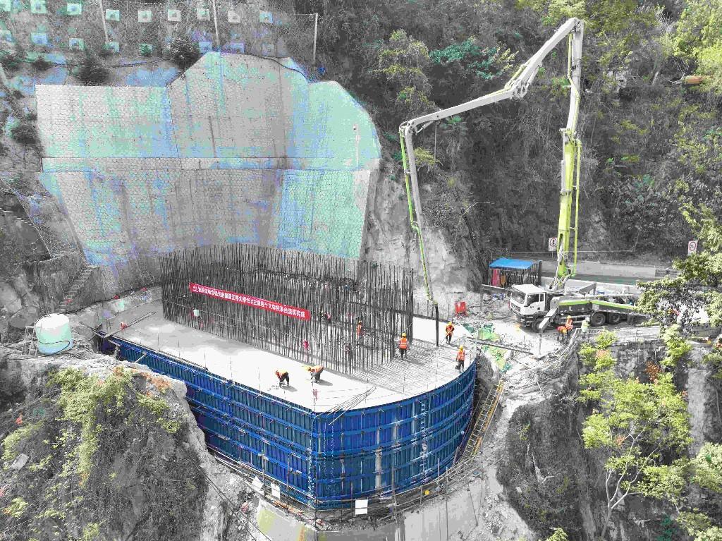 中铁十一局西渝高铁重庆枢纽站前1标项目部承担西渝高铁约22.8公里施工任务,其中将军岩隧道和北碚天府嘉陵江大桥为本标段重难点工程及控制性工程。中铁十一局西渝高铁重庆枢纽1标项目部四管组经理陈根介绍,本次嘉陵江大桥15号主墩承台混凝土浇筑,建设者们严格按照首件工程施工要求,制定专项方案,克服地形窄、岩质高、组织难等问题,承台施工平台采用一次性开挖至设计高程后进行桩基施工,引进大直径硬岩旋挖钻机,实施大直径岩溶区硬质岩桩基快速施工。同时,针对大体积混凝土因水化热引起的有害裂缝及钢筋骨架安装困难的问题,项目技术团队利用建模技术,在承台内设置冷却水管、测温元件及型钢劲性骨架,试验优化混凝土配合比及外加剂,实现安全平稳建设。