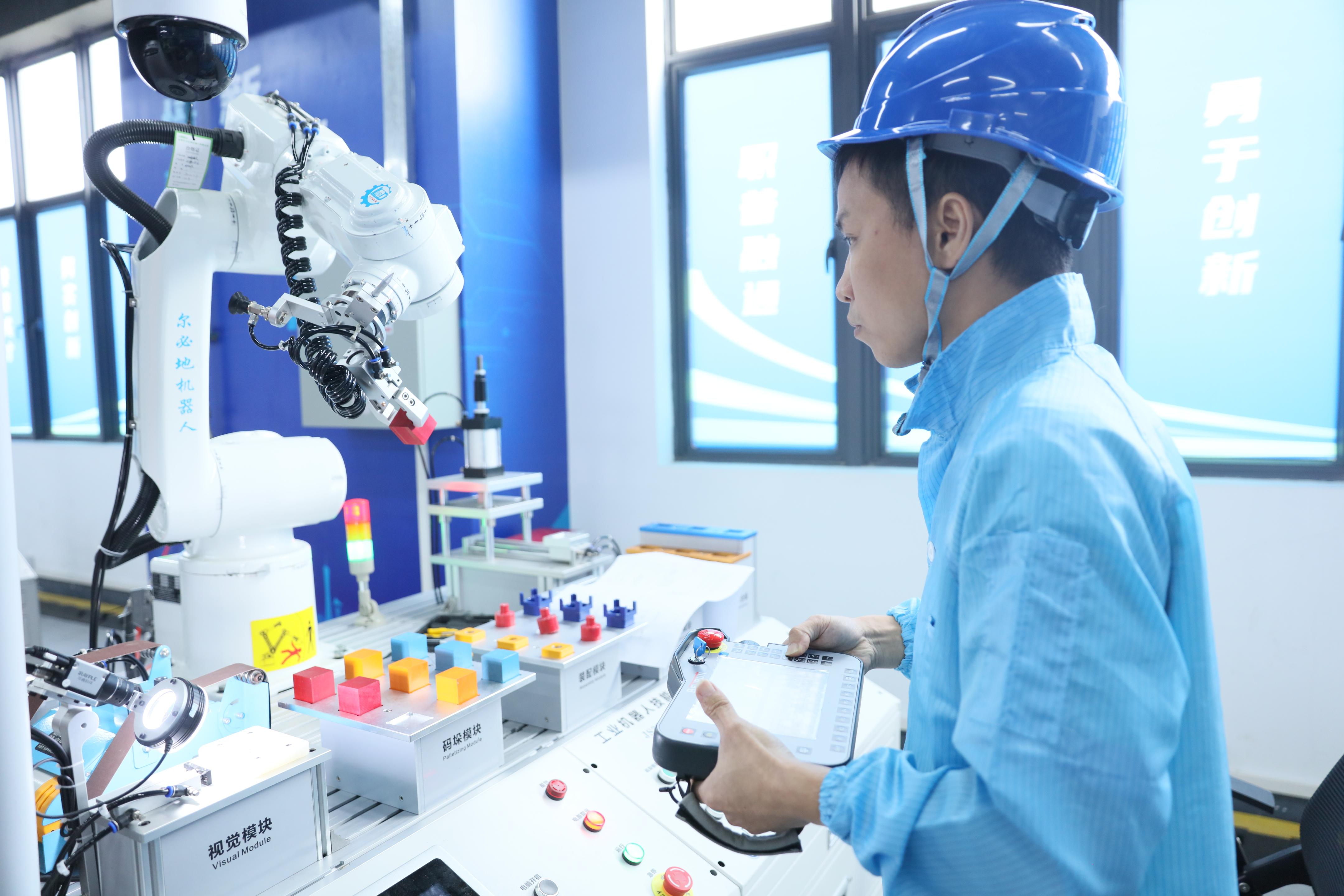 据介绍,职业技能竞赛已举办15届。今年大赛新增设了工业机器人系统操作员比赛项目,推动竞赛活动向新技术新业态新模式领域拓展。该项目内容参照国家职业技能工业机器人系统操作员高级工标准,设置了“理论知识”“操作技能”两个考核环节。其中,理论知识占总成绩的20%,操作技能占80%。