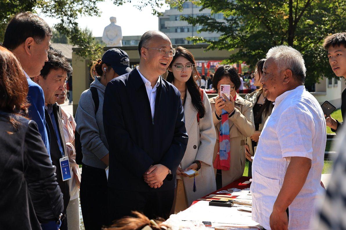 活动现场设有七大主题展区,通过展览、体验、品鉴等多种形式,让师生亲身感受耕读文化的魅力。现场,师生们纷纷走入展区,沉浸式体验耕读文化节展示项目。在智慧装备体验区,师生们观看神奇的化学电源和化学温度计等现场展示,体验骨导通讯眼镜等装备;在食品体验区,师生们品尝果蔬、酸奶、肉类食品等;在校友企业体验区,师生们聆听返校校友秉承“三农”情怀,矢志以科技报国的学农为农故事;在花艺茶艺体验区,师生们在花香四溢中感受插花艺术的魅力。