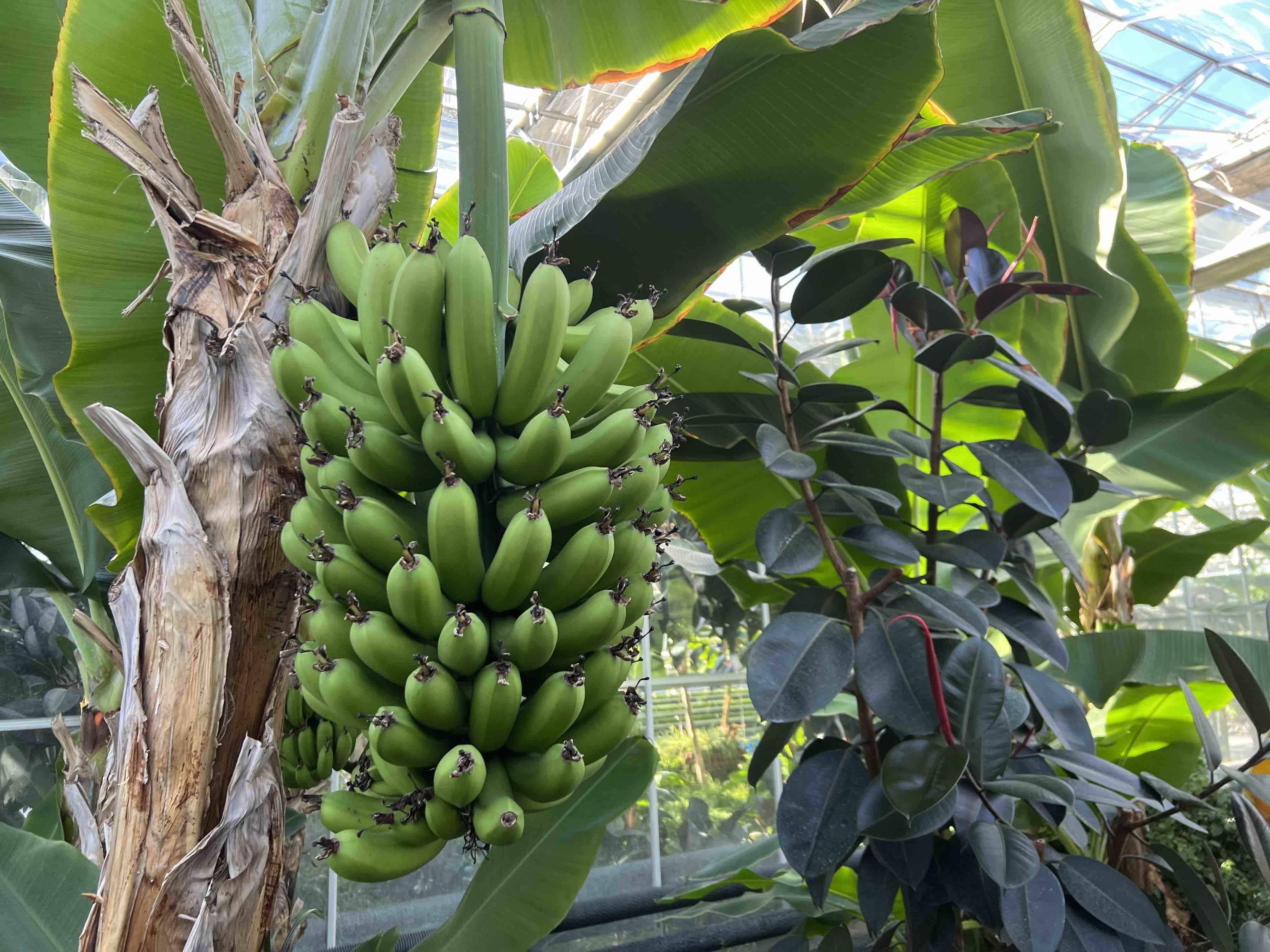 在设施园艺大棚里,香蕉、柠檬、番石榴等枝繁叶茂,果实累累,这些热带植物都出自一家能源企业。9月29日,记者跟随“铸牢共同体 中华一家亲”主题宣传活动来到新疆庆华能源集团有限公司(以下简称新疆庆华)二氧化碳减排实验室,看到了利用二氧化碳“种”出来的热带植物。