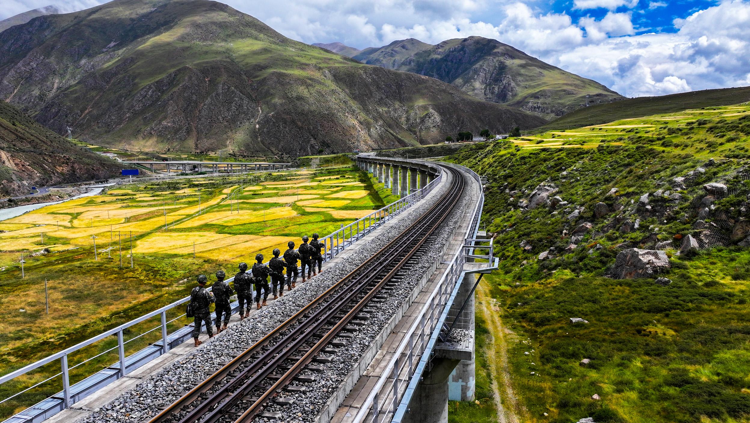 这些年,高原武警官兵们不仅见证了新时代“天路”的发展,助力高原人民的幸福路越走越宽。这条铁路在推动驻地建设发展的同时,也推动着部队全面建设向上向好,不仅为官兵履行使命任务提供了坚强保障和有力支撑,更坚定了官兵扎根高原、卫国戍边的信念和决心。