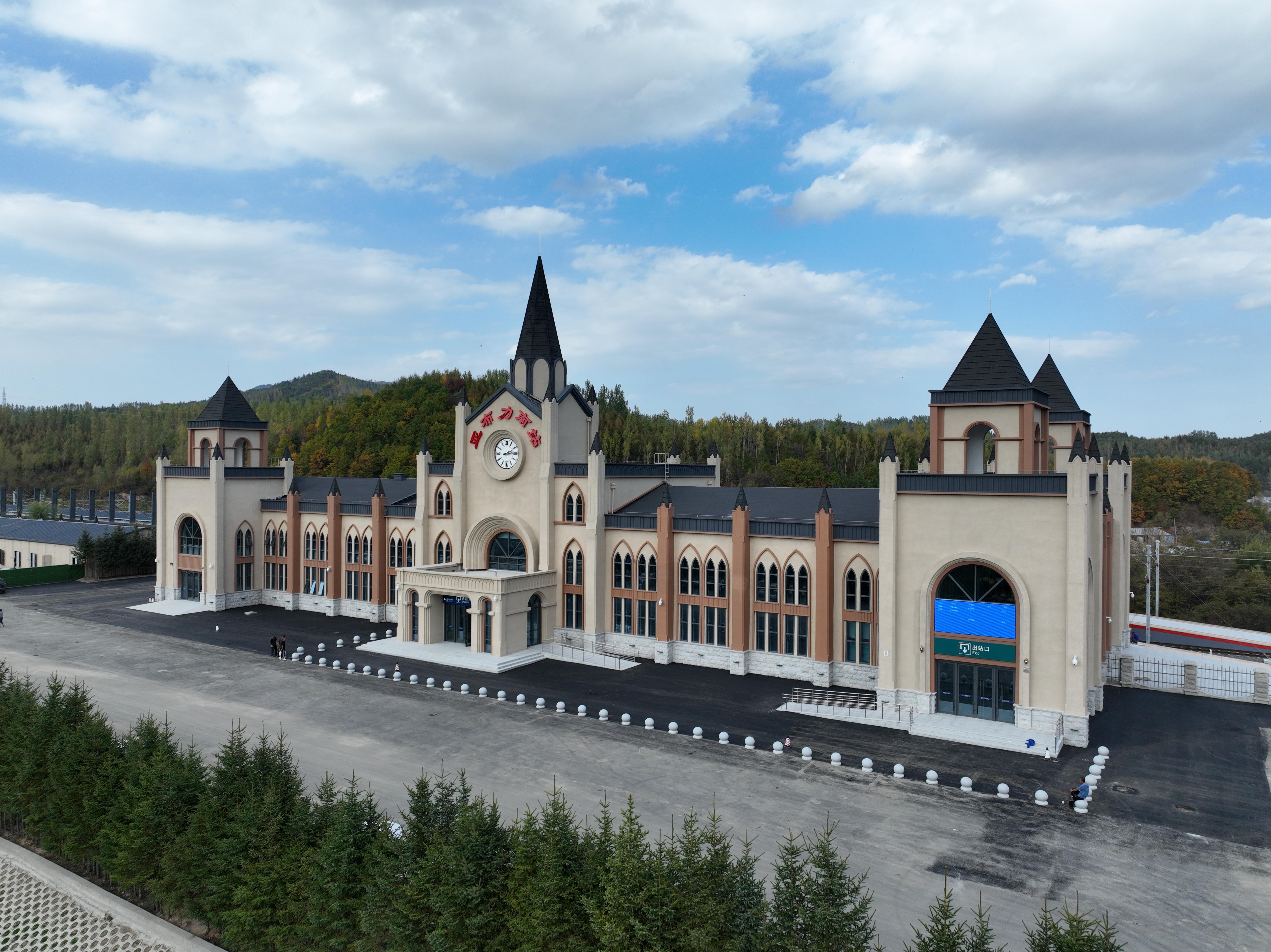 亚布力南站地处黑龙江省亚布力镇南部,始建于2007年,邻近亚布力熊猫馆、滑雪旅游度假区、青云小镇等旅游景区,距第9届亚洲冬季运动会雪上项目场地仅有1公里。车站建筑设计以尖顶、拱顶和细长柱为主要特点,曾被评为全国最美十个小站之一。但因建设年代较早,车站不具备电气化铁路运行能力,无法满足当前铁路运输需求。