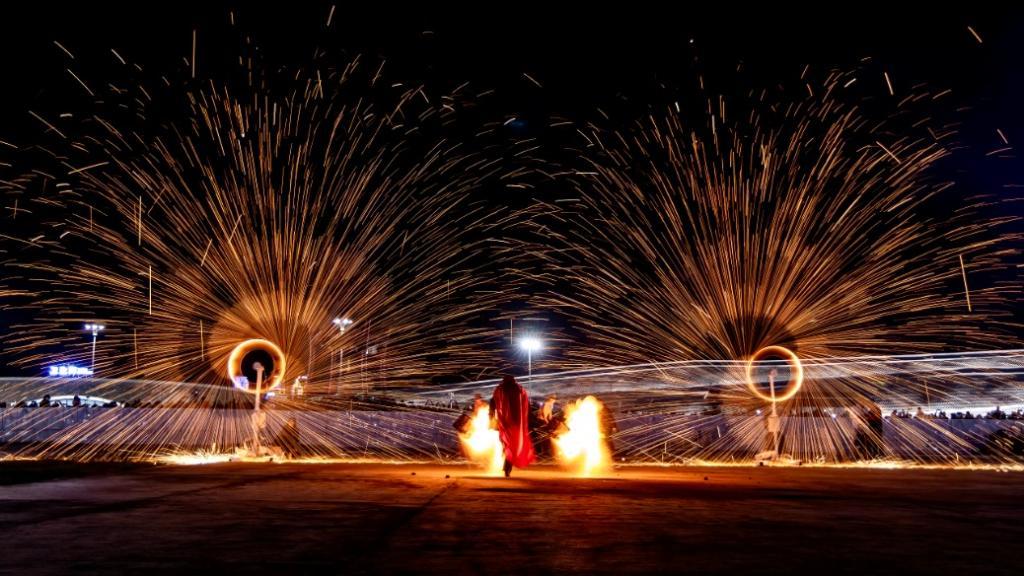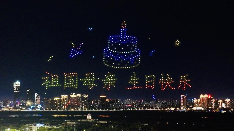 国庆节当晚,哈尔滨冰雪大世界园区内,烟花腾空而起,无人机在夜空中演绎出“祖国母亲 生日快乐”等字样,打铁花和火壶表演精彩连连,仿若璀璨星辰洒落人间,令人惊叹。在索菲亚景区,梦幻光影秀浪漫上映,吸引众多市民和游客驻足观赏留念。