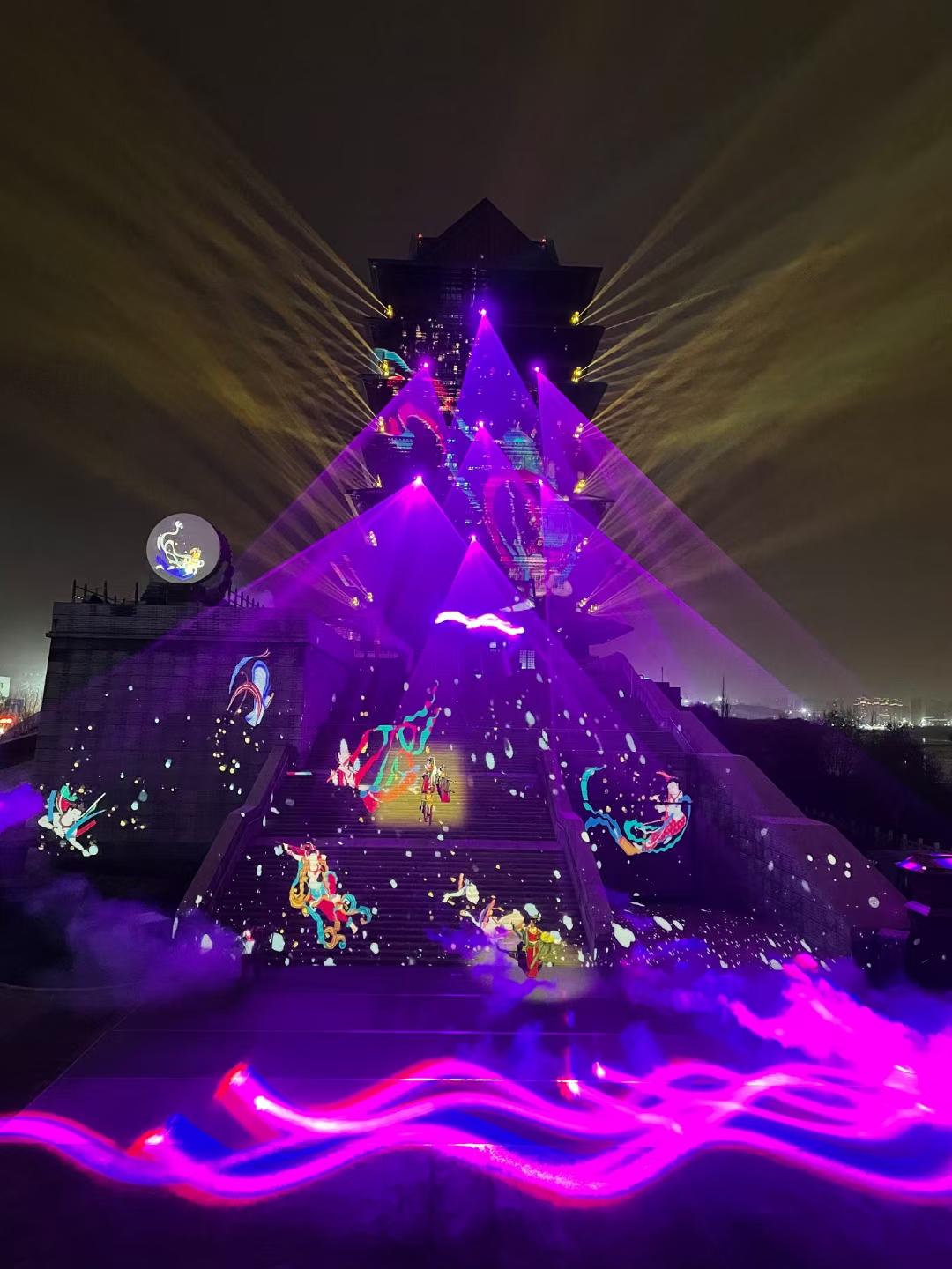 灯光秀则如同魔法师的手笔,将黄河楼装点得如诗如画——春天的温暖、夏天的炙热、秋天的金黄和冬天的凛冽,在光影的变幻中一一呈现。