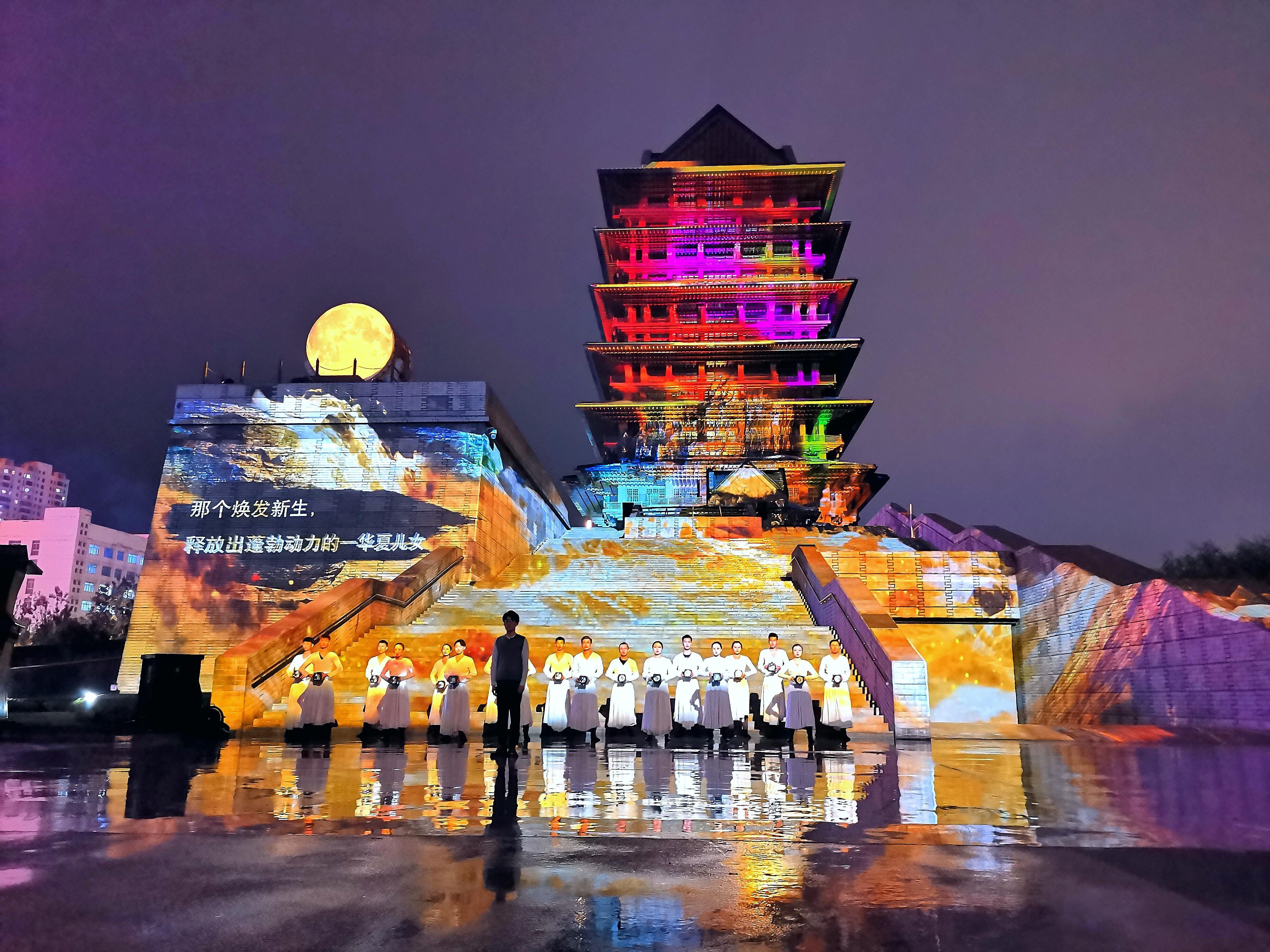 国庆期间,每当夜幕降临,黄河楼前的光影秀《大有兰州》便会如约而至。