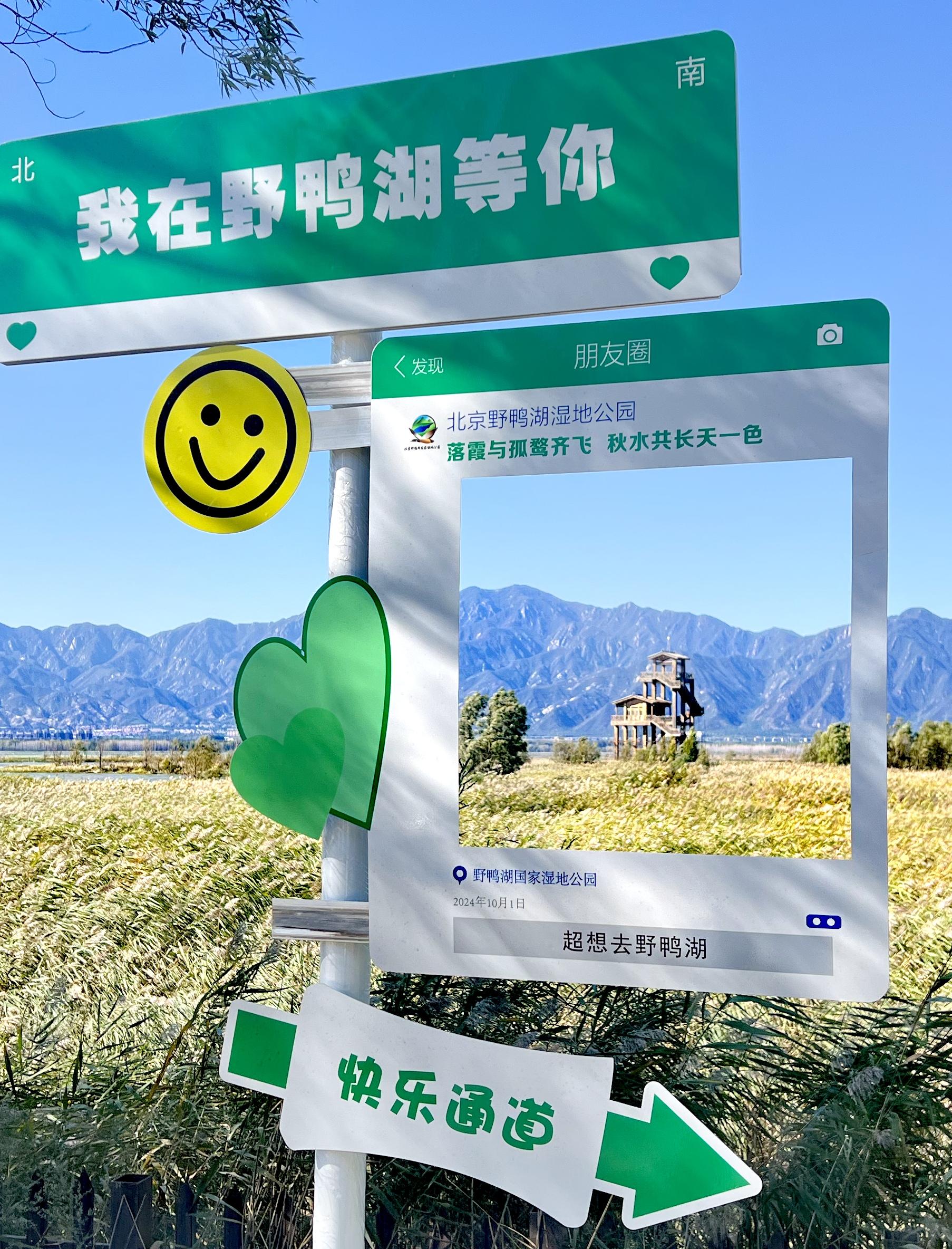 另外,在国庆假期,入园的游客朋友们可以参与“遇见野鸭湖”湿地生态分享会,在大门内下沉广场学习了解湿地生态保护、观鸟知识、湿地植物等方面的知识。