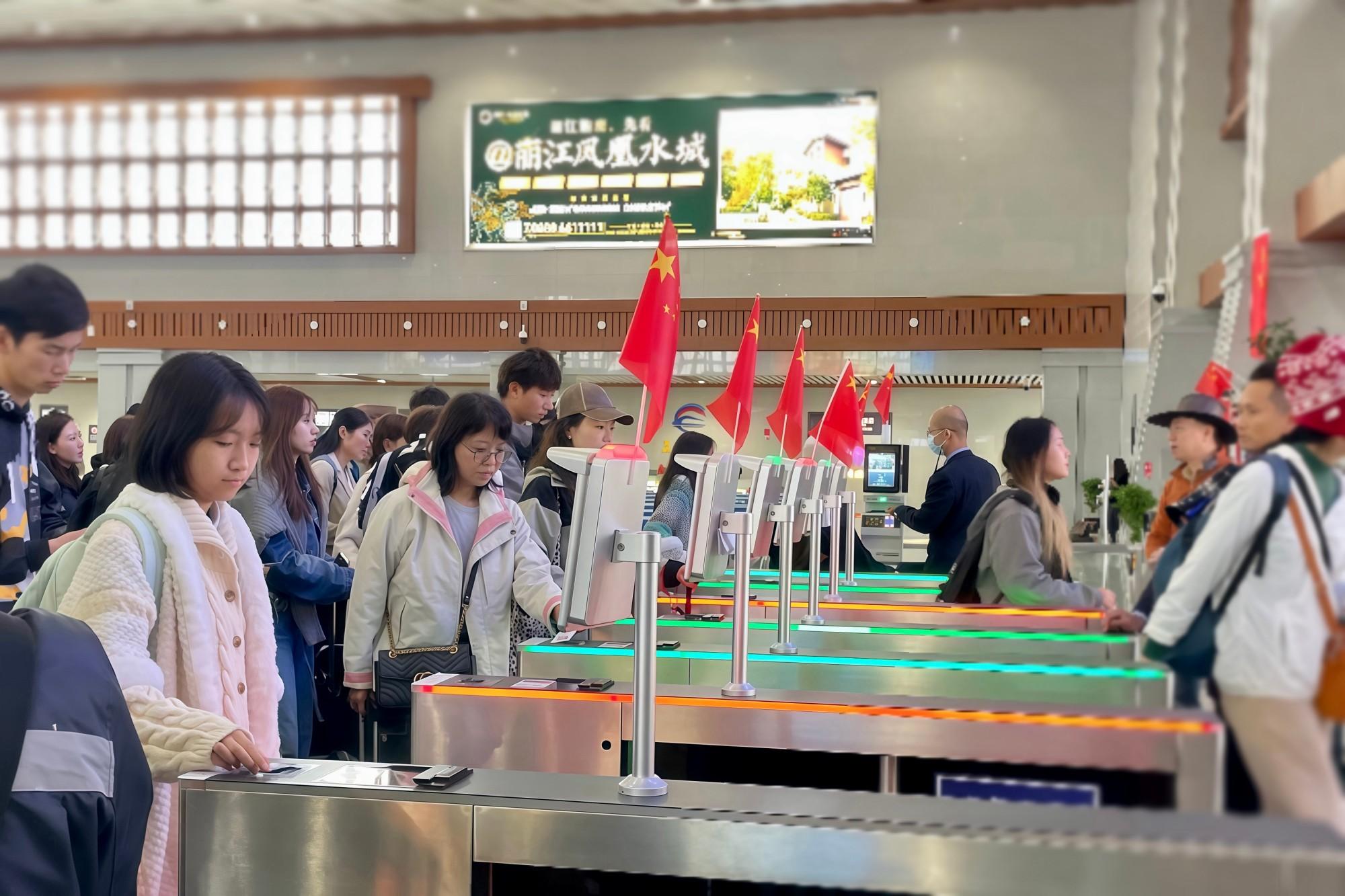 10月7日,记者从中国铁路昆明局集团有限公司(以下简称国铁昆明局)获悉,随着国庆假期进入尾声,云南铁路迎来了国庆假期的返程高峰。7日当天,预计发送旅客50万人次,铁路部门采取系列措施,全力保障旅客安全、有序、温馨出行。