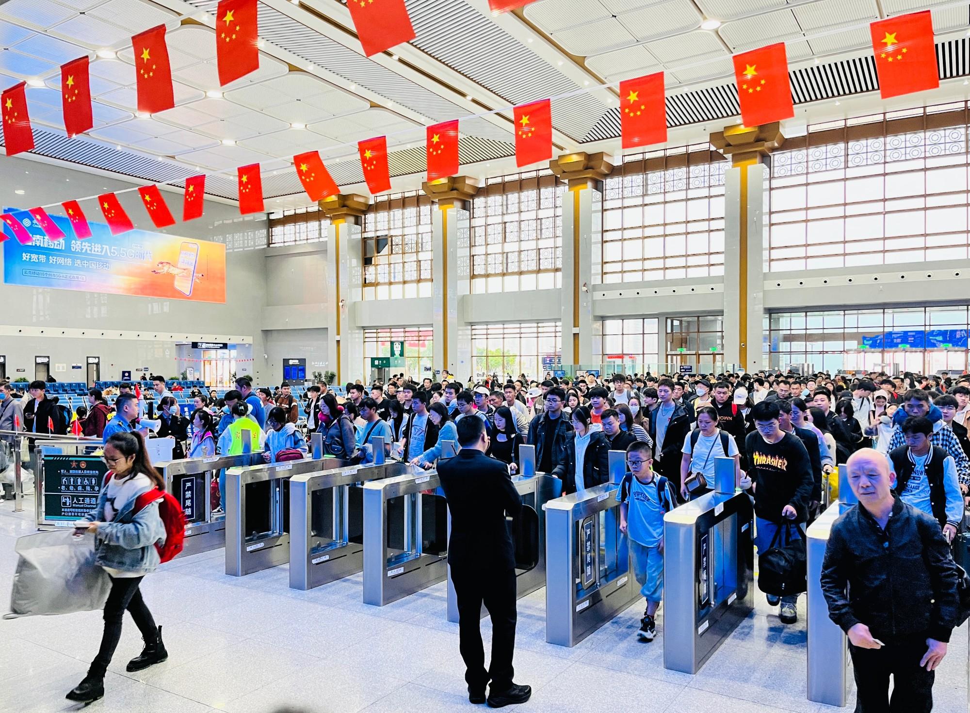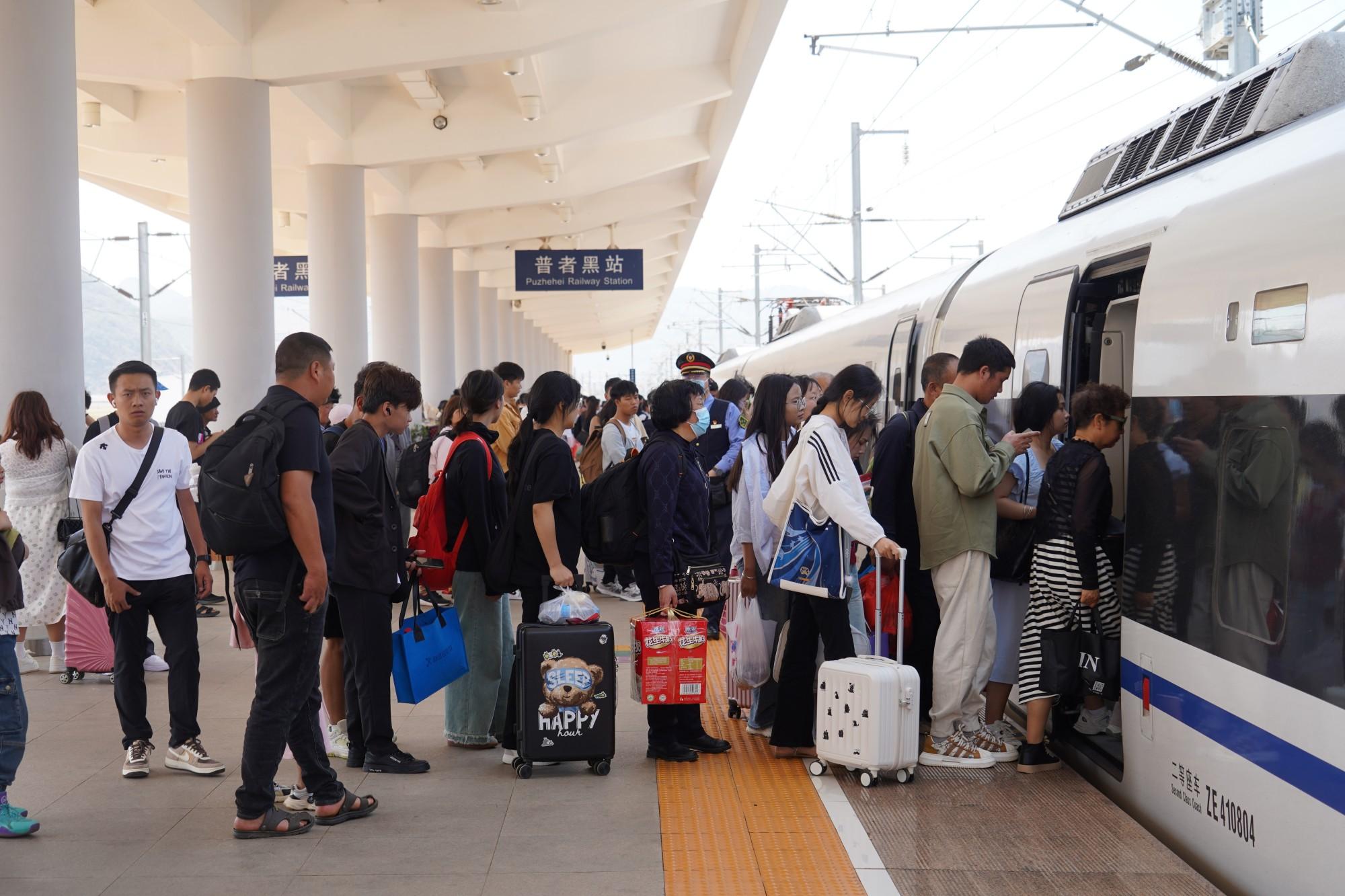 铁路部门相关负责人提示,国庆假期返程高峰期间铁路客流较大,请旅客朋友合理安排行程,按规定携带随身物品,预留充足时间进站乘车。