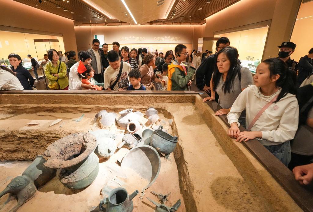 在河南安阳,殷墟博物馆新馆迎来了开馆后的首个国庆黄金周,络绎不绝的游客感受着文物魅力。殷墟博物馆运营负责人连亚飞表示,殷墟博物馆广泛运用人工智能、多媒体等数字技术,将三千年前的文明以现代方式呈现。“新馆用技术连接了过去和现在,让文物活起来、动起来,参观后确实有很大的收获。”北京游客洪杰参观后说。