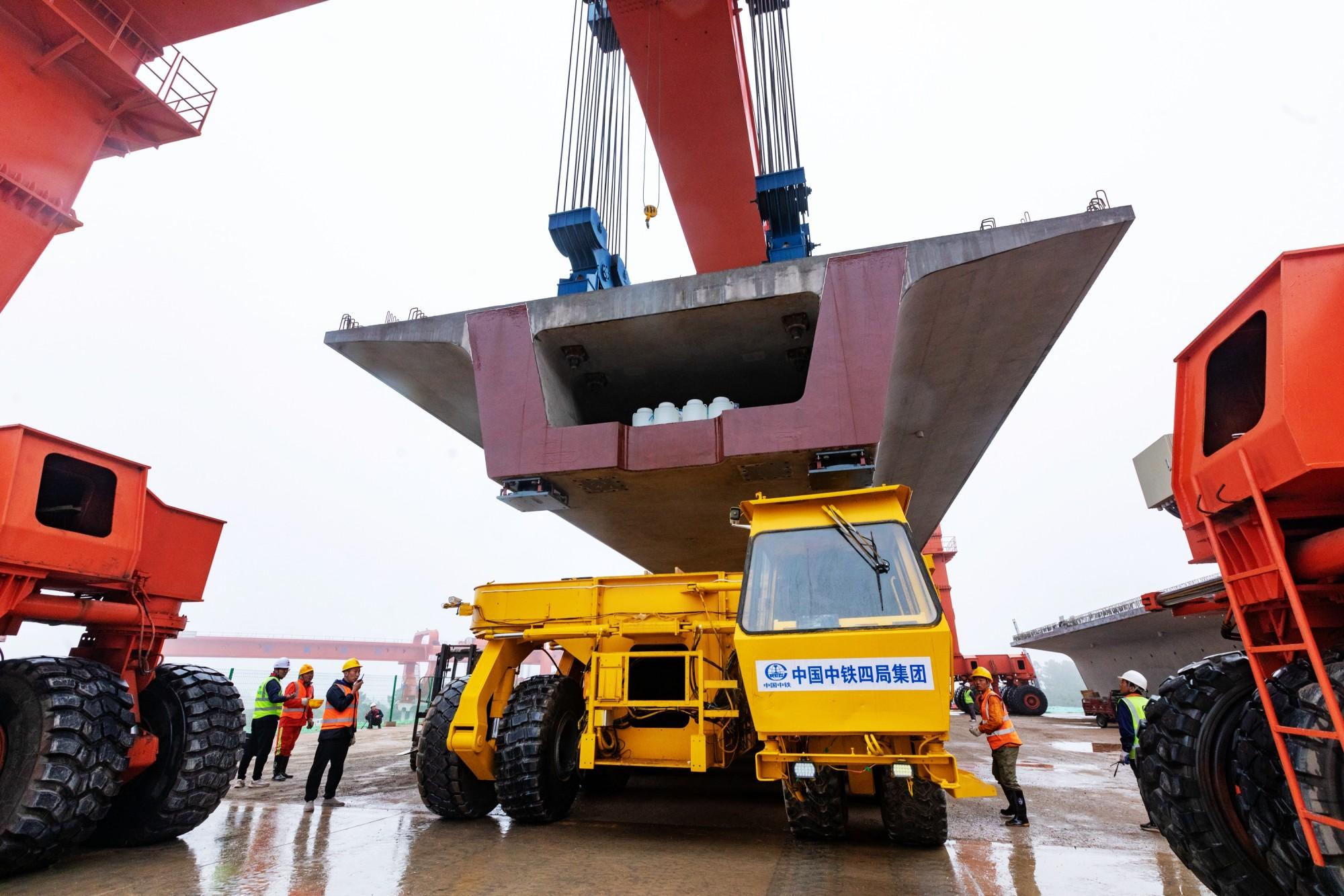 “这些箱梁先在制梁场进行预制,预制完成后运送到现场进行架设。目前,嵩明制梁场已经完成了67孔箱梁的生产任务,计划后续每月架设45孔箱梁。制梁场将承担起渝昆高铁云南段420孔箱梁的预制和架设施工任务。”中铁四局渝昆高铁项目经理部胥克明说。