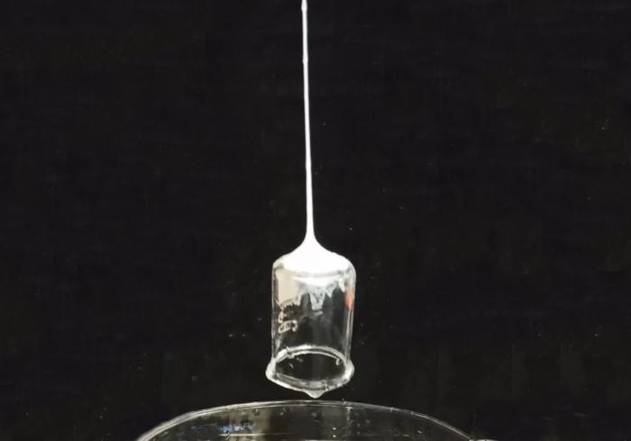 在稍早时间的一次实验中,研究团队意外发现,当使用丙酮清洁玻璃器皿时,底部出现了网状物质。这一偶然现象帮助解决了复制蜘蛛丝过程中遇到的一些工程挑战。丝素蛋白溶液在接触到乙醇或丙酮等有机溶剂时会缓慢固化成半固体水凝胶,但加入多巴胺作为黏合剂成分后,固化过程变得非常快速。多巴胺的作用机制类似于海洋生物藤壶所使用的化学反应,能促进纤维牢固地黏附于各种表面。