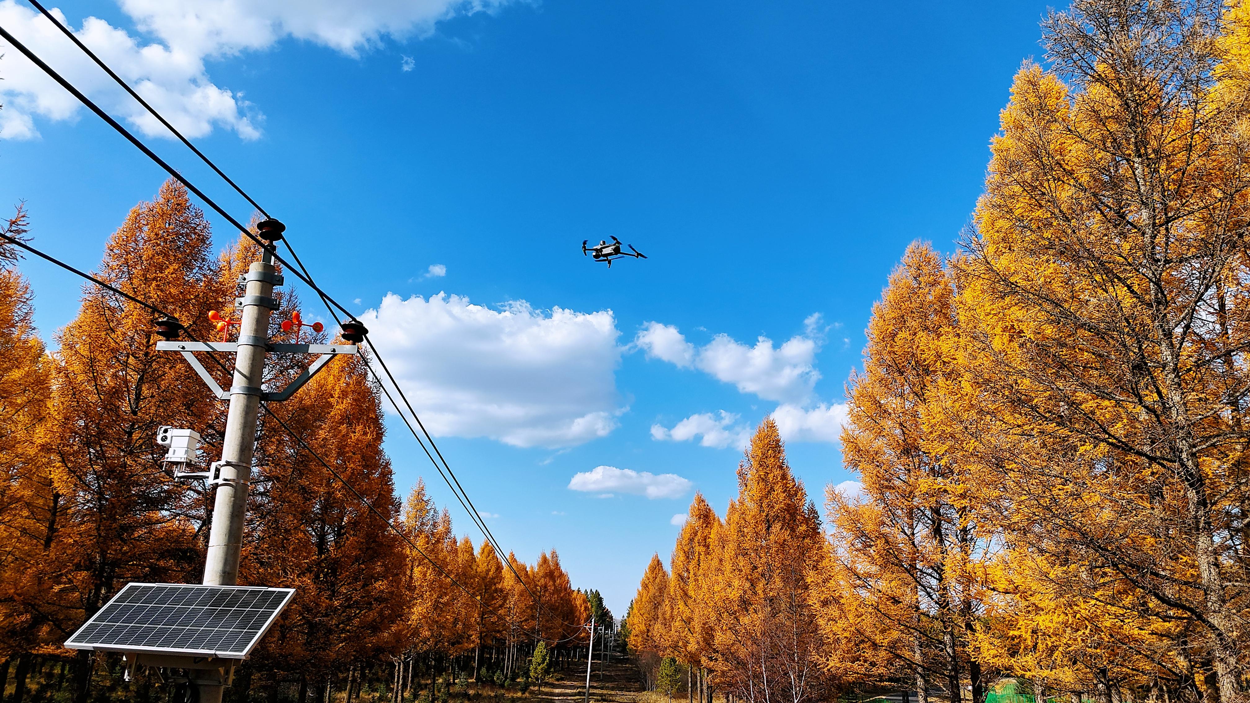 为提高塞罕坝机械林场供电线路运检质效,近年来,国网冀北电力有限公司持续加大电网运检投入,运用无人机、全景摄像头和激光雷达等设备,搭建了云上1:1塞罕坝机械林场数字孪生模型,在35千伏机械林场变电站建设了首个无人机自主巡检机巢,27条供电线路实现智能巡检,以及防火信息的联动更新,打造了新型电力系统运检新场景。
