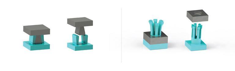 互锁超表面的工作原理类似于乐高积木或魔术贴,通过力的传递和运动限制来实现两个物体之间的连接。过去这类连接方法是被动的,需要外部力量才能完成组装。然而,研究人员利用镍钛形状记忆合金的独特性质(即能够在温度变化下恢复其原始形态),开发出一种能主动控制连接状态的技术。这不仅增加了结构的灵活性和功能性,同时也保证不会牺牲原有的强度或稳定性。