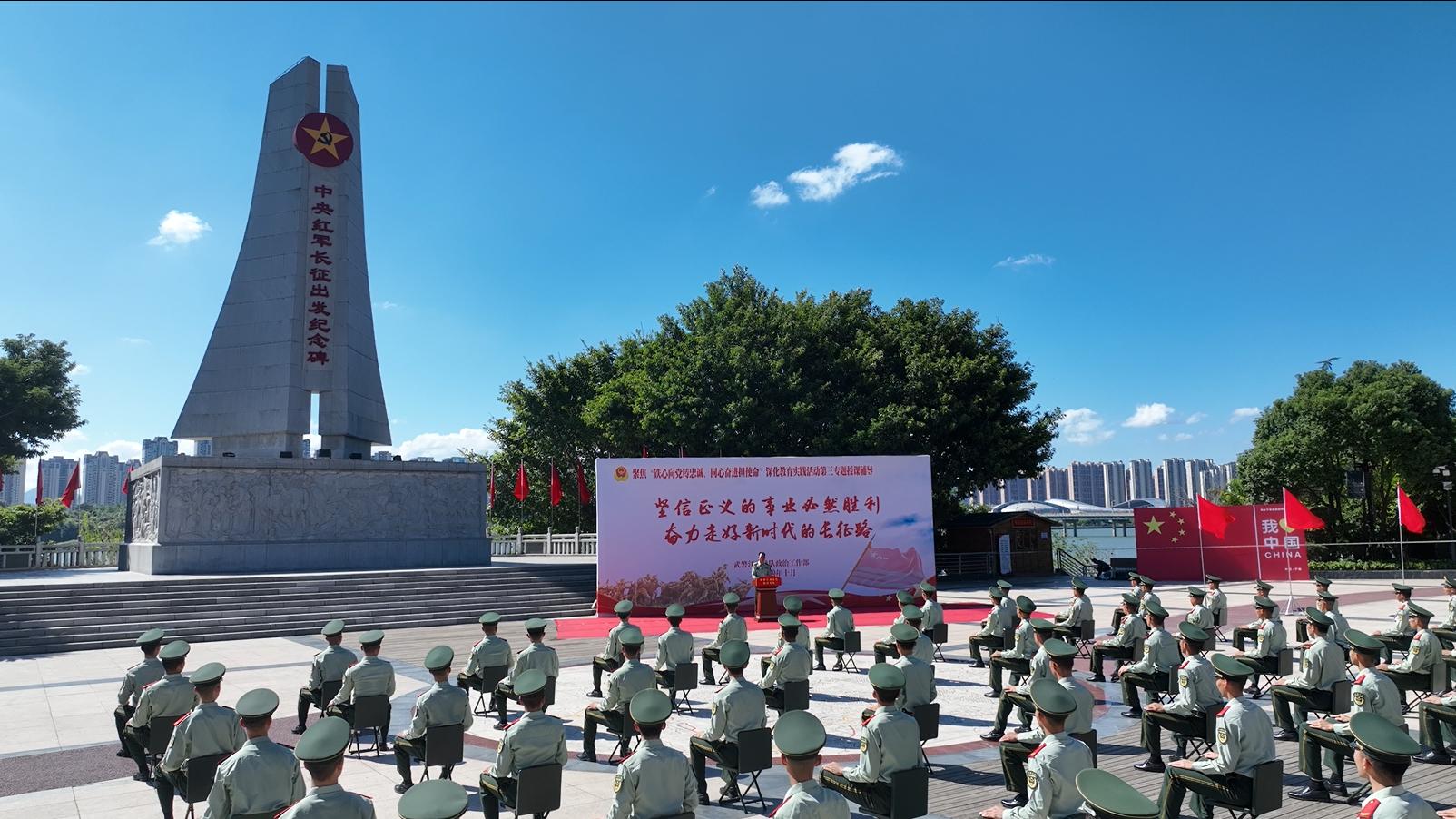 “90年前,中央红军从于都集结出发,踏上漫漫征途,用信仰和生命开启了改变中国前途命运的伟大征程……”10月10日,于都长征出发纪念广场,武警江西总队聚焦“铁心向党铸忠诚、同心奋进担使命”深化教育实践活动第三专题沉浸式教育课拉开帷幕。