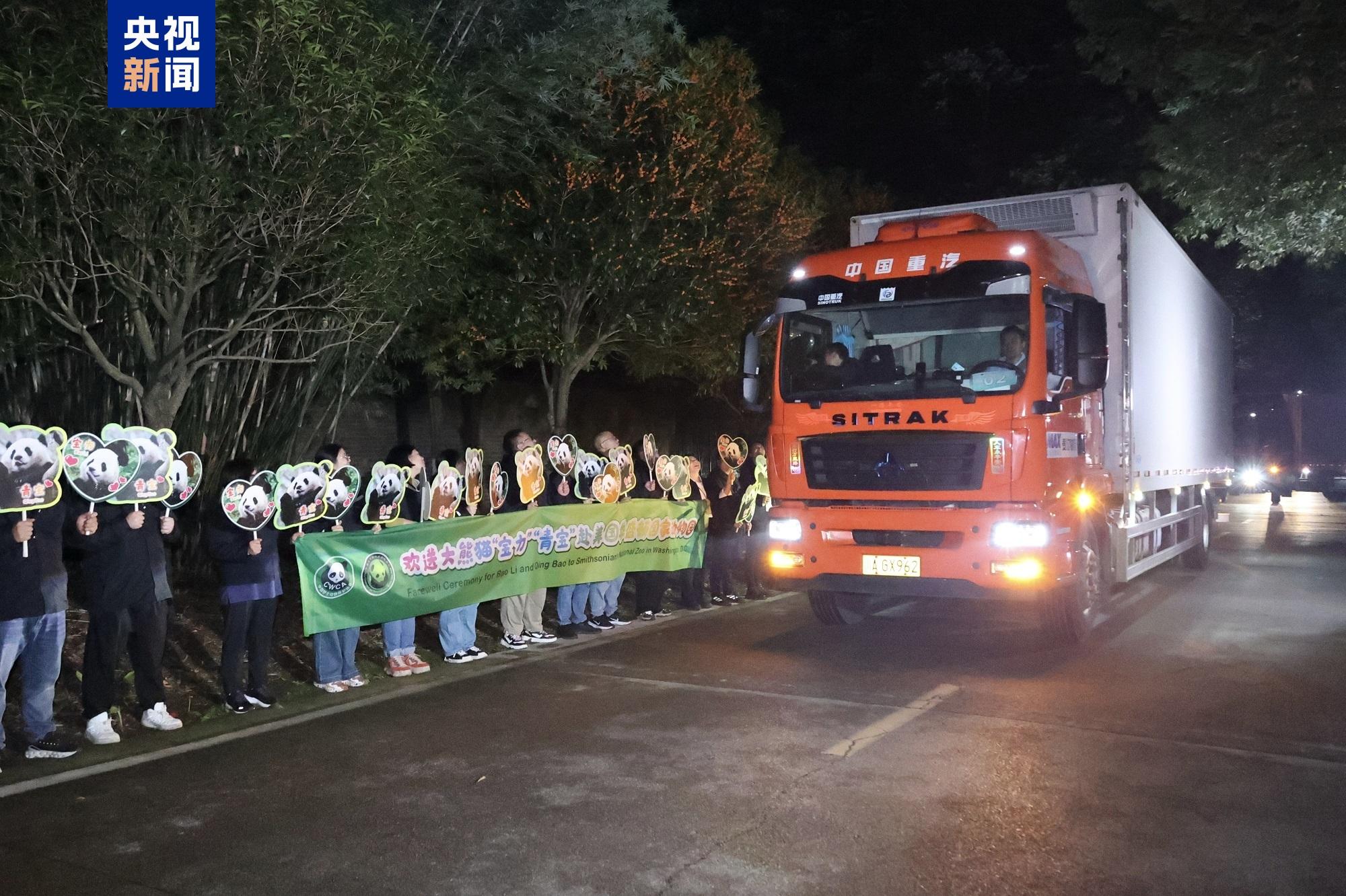 10月14日晚,大熊猫“宝力”“青宝”乘坐专车离开中国大熊猫保护研究中心都江堰基地前往成都双流国际机场,将于15日搭乘专机前往美国华盛顿国家动物园,开启为期10年的旅居生活。10月14日下午,中国野生动物保护协会、中国大熊猫保护研究中心为两只大熊猫举办了欢送仪式。