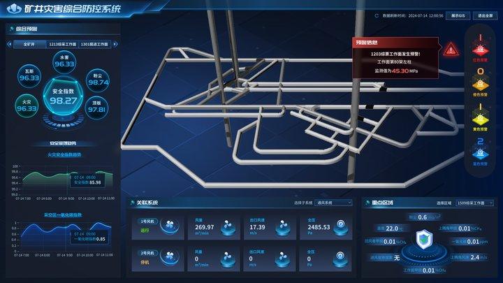 在智能预警领域,中国煤科常州研究院承担的“西卓煤矿灾害综合防控关键技术及示范应用项目”,集合和分析20多个子系统的重要数据,实现了灾害监测子系统间的互联互通和信息共享,增强了灾害预防的及时性和有效性,构建了完善的煤矿灾害管控体系。