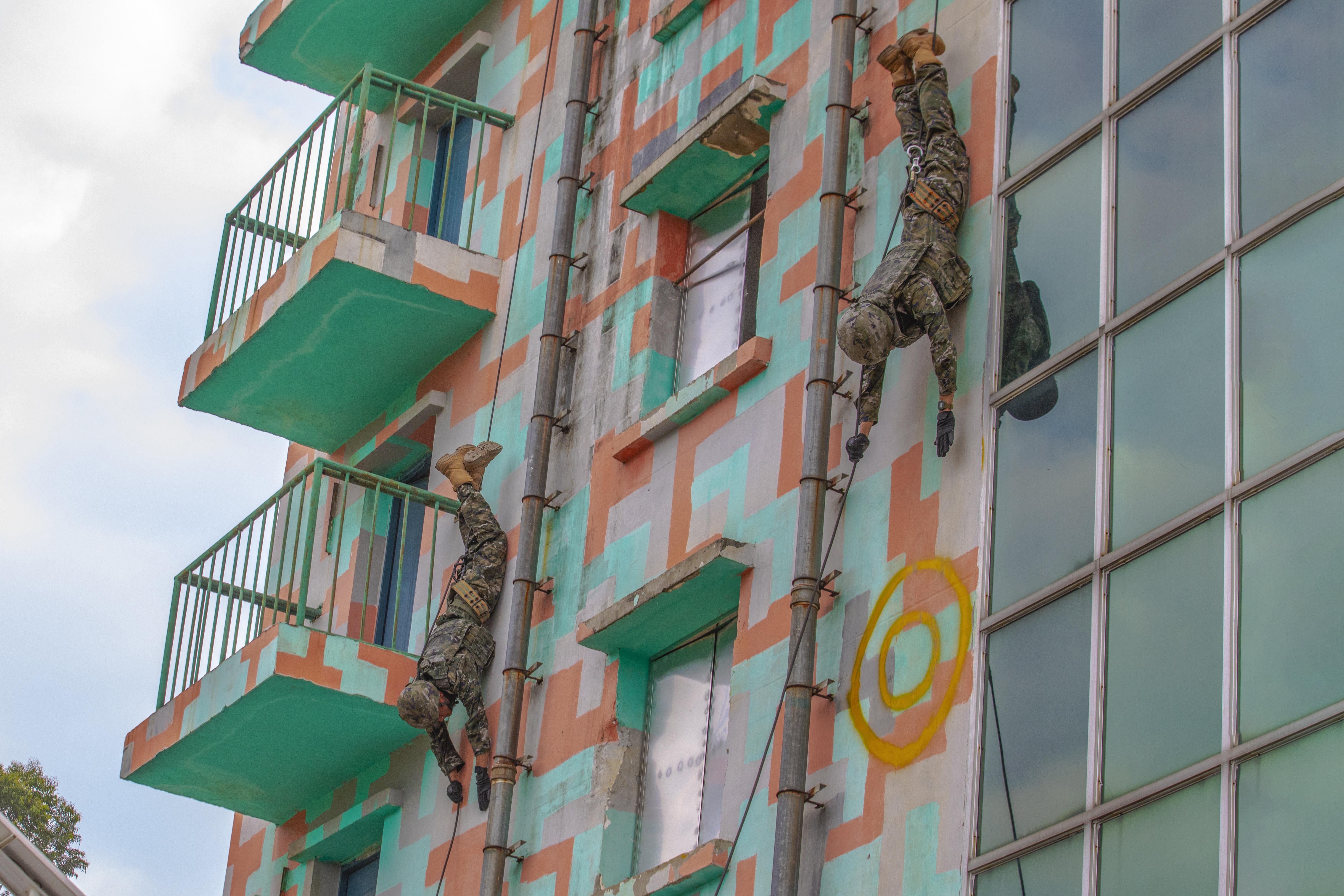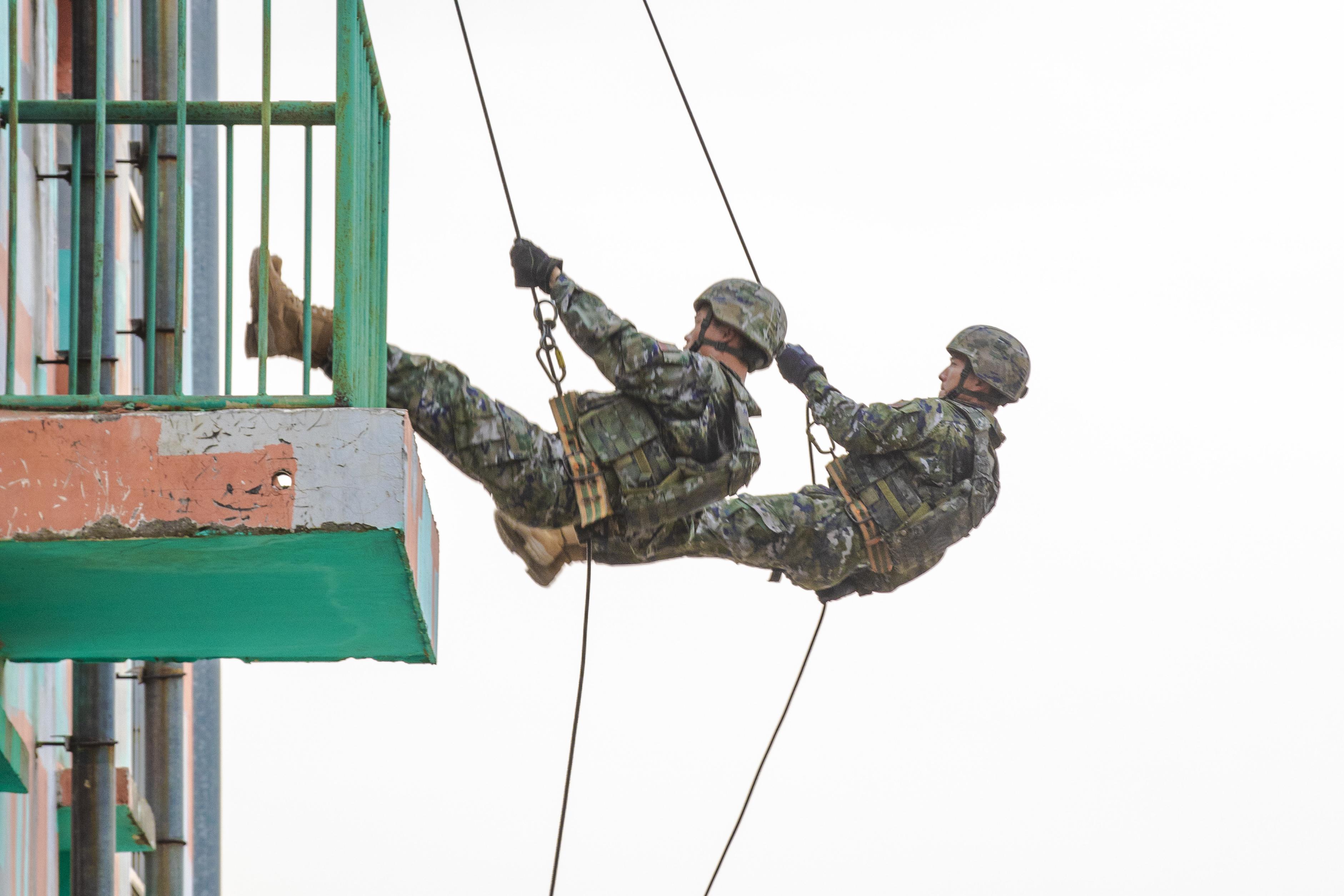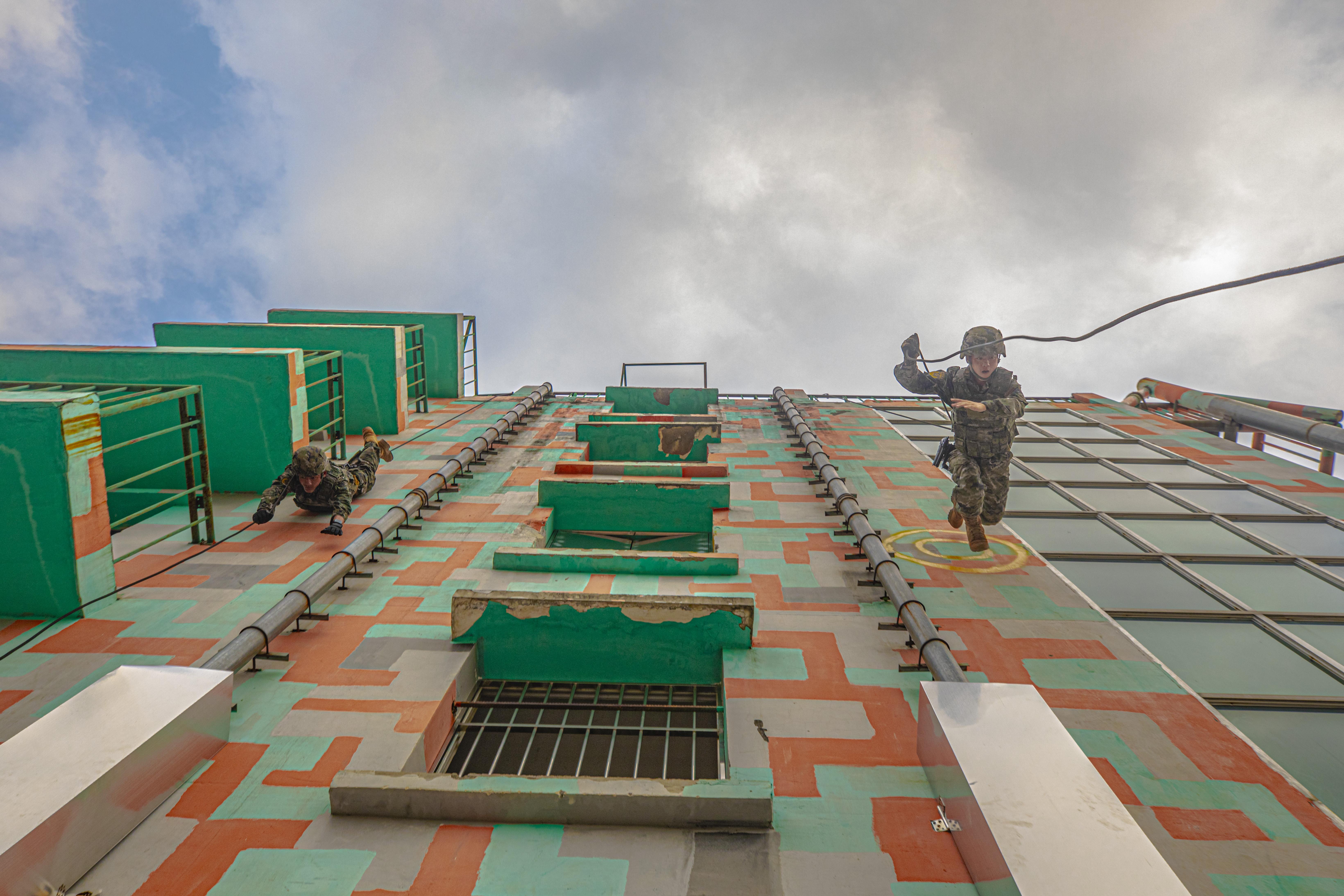 10月14日,武警广西总队百色支队组织特战队员开展楼房攀登、高空索降等课目训练。此次训练旨在全面强化特战队员心理素质,进一步提高单兵技战术水平,为特战分队遂行多样化反恐处突任务奠定坚实的能力基础。