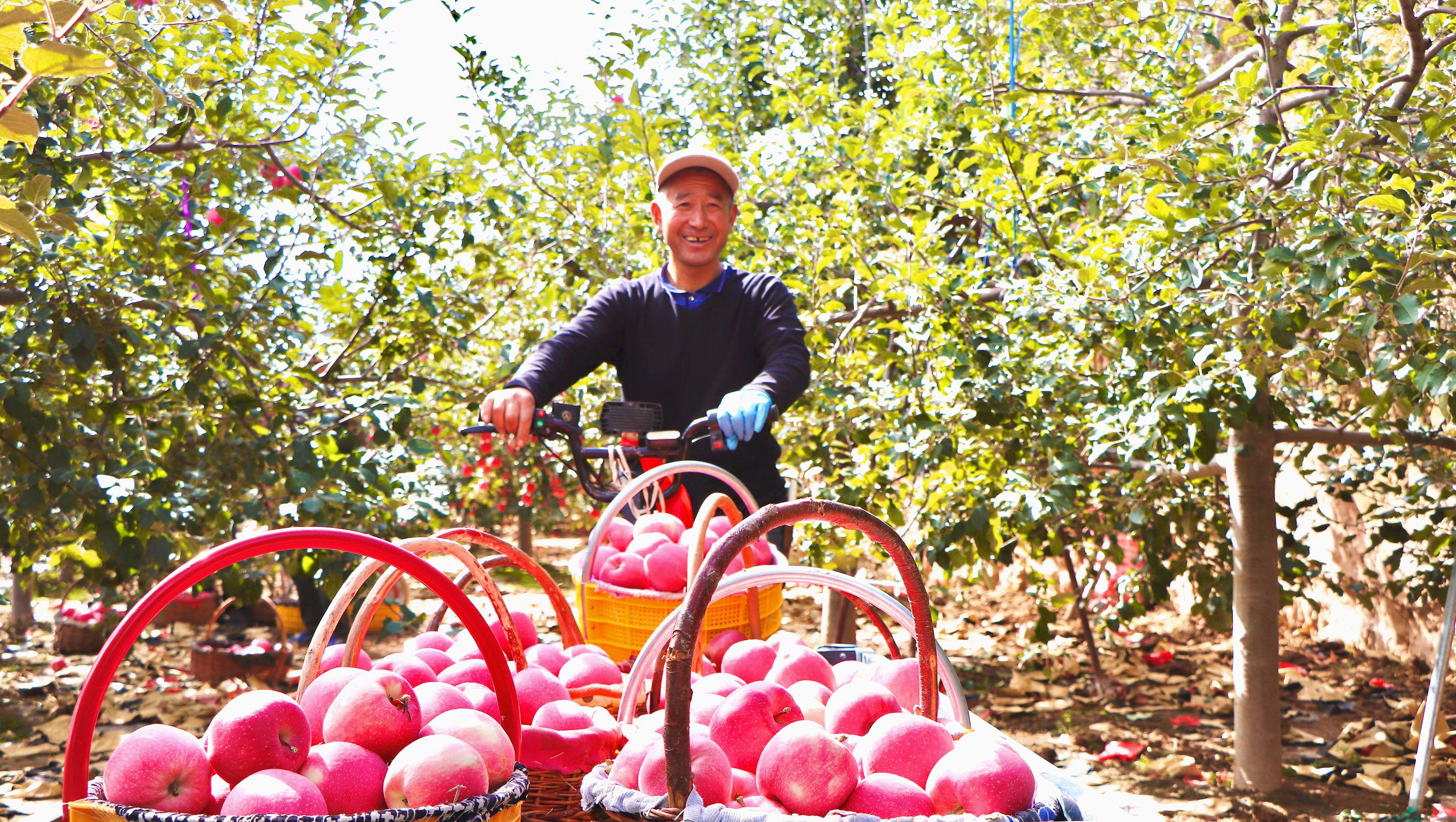 金秋时节,行走在甘肃省静宁县广袤无垠的大地上,成片的果园宛如巨幅画卷缓缓铺展,红彤彤的苹果挂满在果树上等待采摘。