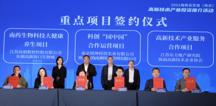 此外,海南省科学技术厅等主办方统筹协调,深入南京重点高新技术产业园区开展现场考察对接,主动为省内重点园区招商牵线搭桥、对接资源,最终促成6个重点项目达成合作,并在当天的推介会上举行了签约仪式。据悉,这6个重点项目涵盖生物医药、数字经济、新一代信息通信技术等多个领域,将为海南经济发展注入新的活力。