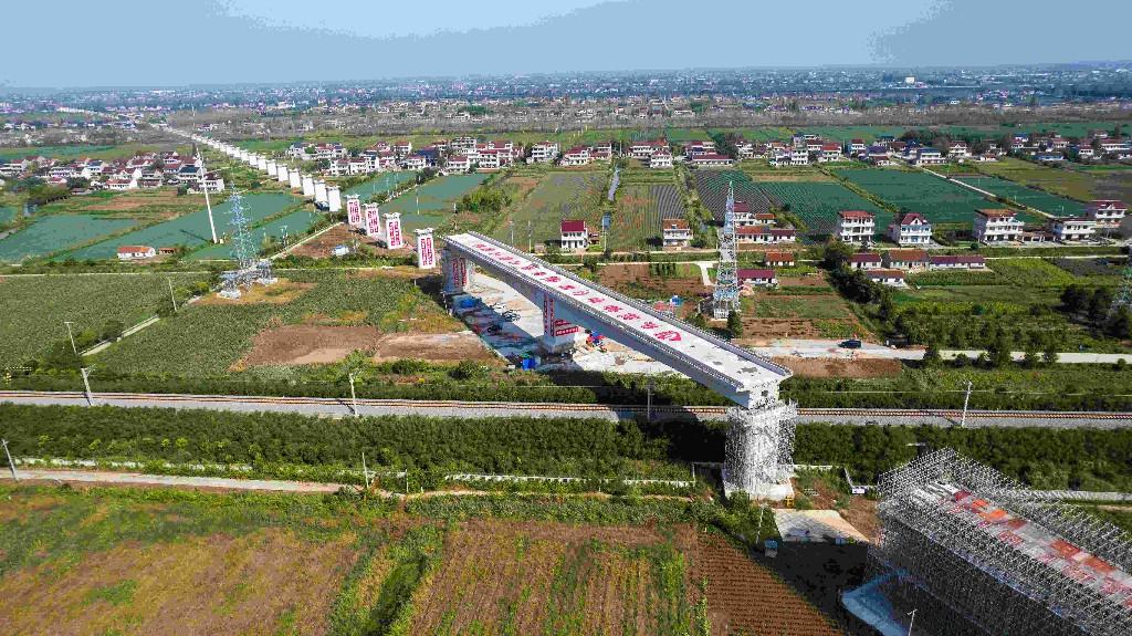 10月18日凌晨,在江苏南通市启东市境内建设现场,上海至南京至合肥高铁启东特大桥跨宁启铁路转体连续梁完成转体,标志着启东特大桥往崇明方向架梁、铺轨通道正式打通,工程建设取得阶段性进展。