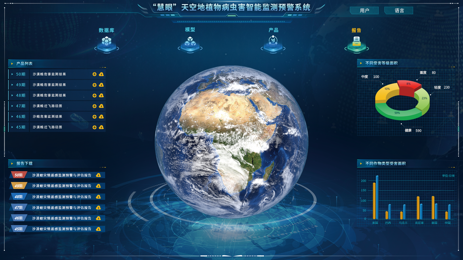在近地尺度上,基于自主研发的融合图谱信息和人工智能检测算法的芯片级病虫害智能检测装置,“慧眼”系统实现了适应实际植保场景的病虫害快速精准检测;在地块尺度上,基于自主开发的低空病虫害巡检专用无人机遥感整体解决方案,“慧眼”系统实现了地块级病虫害智能遥感的动态监测与高效管理;在区域尺度上,“慧眼”系统构建了基于遥感、气象、植保等信息的“全球—洲际—全国—热点区域”多尺度病虫害监测与预警技术体系,实现了农林草20余种重大病虫害多尺度动态监测预警,为全球病虫害的前哨预警提供了有力的科技支撑,有利于推动被动防控向主动预防转变。