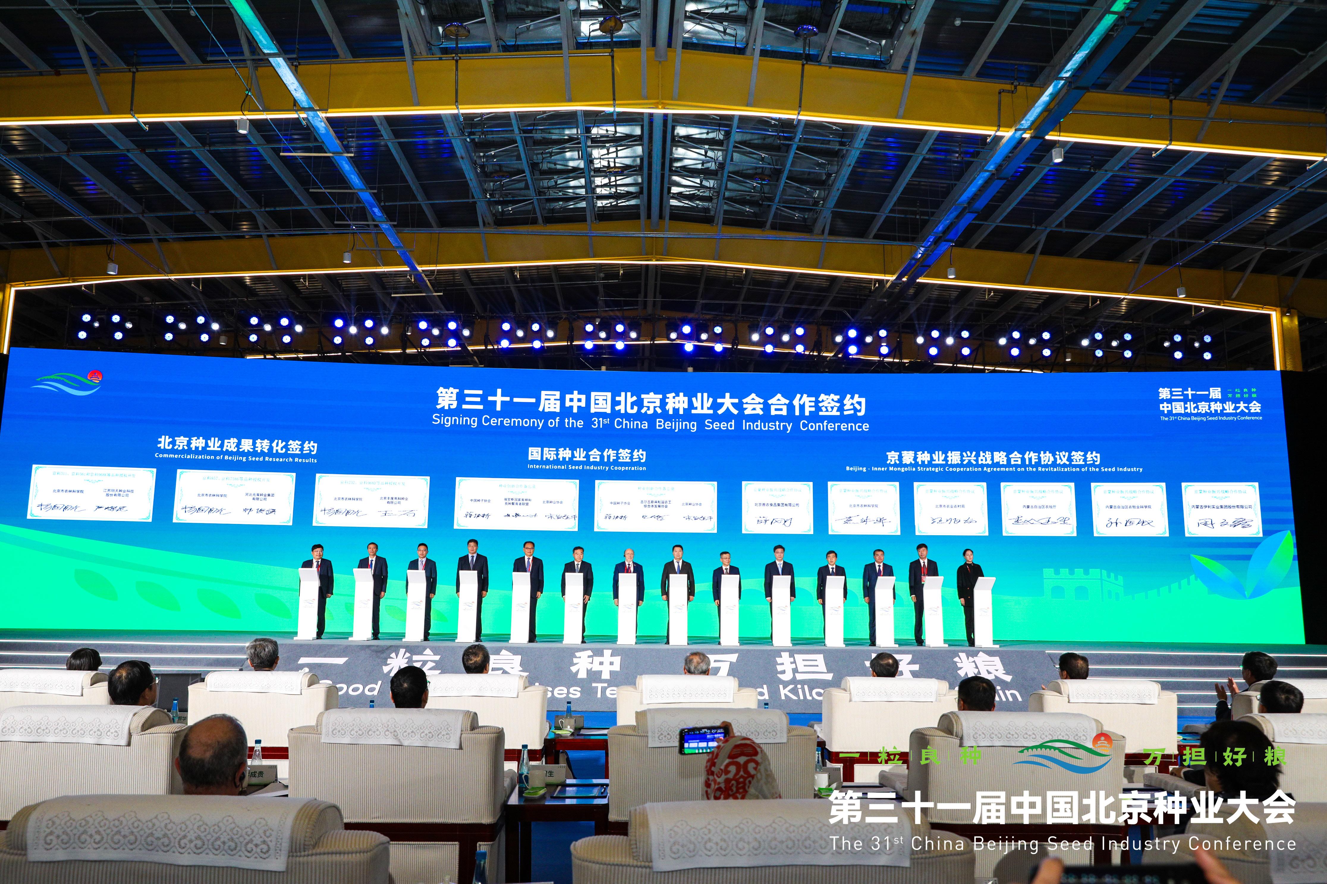 为加快推进玉米新品种的转化应用,在大会开幕式签约环节上,北京市农林科学院玉米研究所与江苏明天种业科技股份有限公司、河北兆育种业集团有限公司、大北农集团旗下北京丰度高科种业有限公司签署了玉米品种战略合作协议。