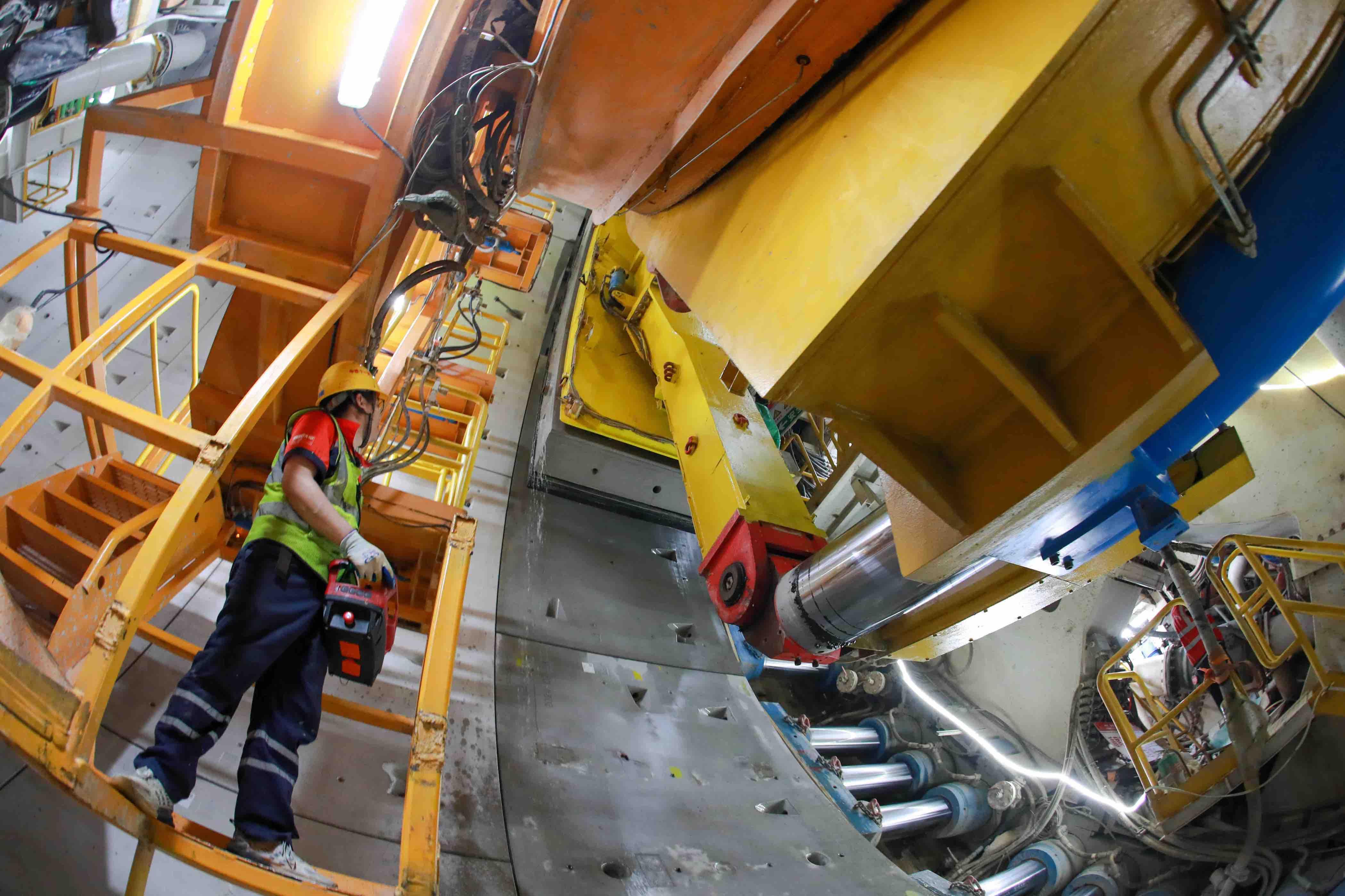 中铁十一局甬舟铁路金塘海底隧道项目负责人张金涛介绍,施工过程中,建设团队从盾尾刷针对性改良、盾构泥浆配比、掘进姿态控制等方面入手,不断强化过程管理,为盾构机畅行海底保驾护航。此外,面对复杂地质条件所带来的施工隐患,建设团队将施工风险源实施五级分级、五色预警管理,同时为盾构机配备了盾体双层壳体、超前地质雷达系统等创新设计,确保工程建设安全顺利推进。