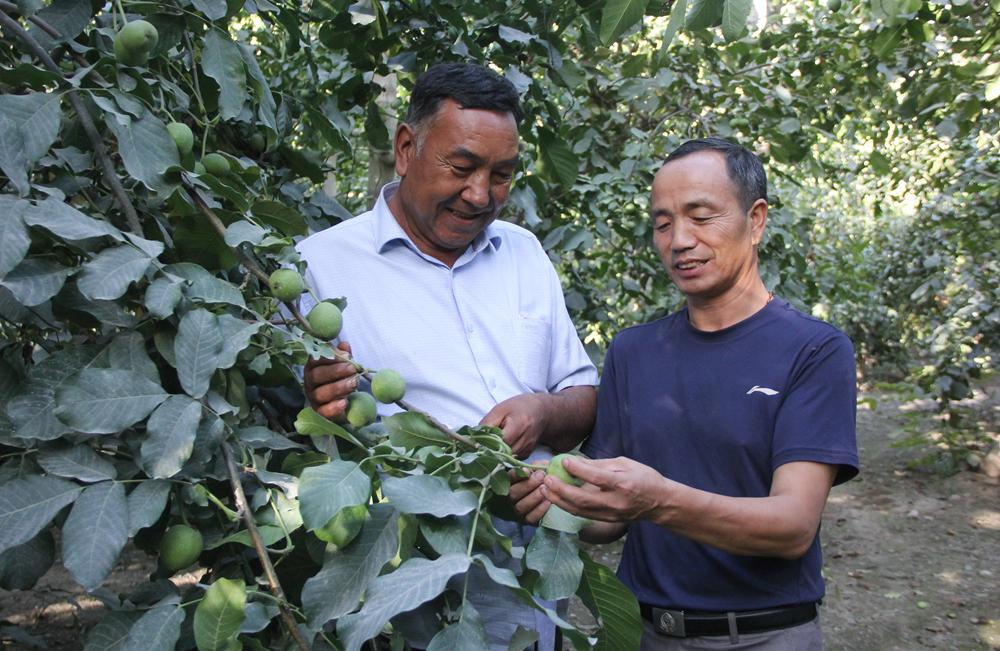 民族团结一心,奔向美好生活。在“中国核桃之乡”温宿县,86万多亩核桃再获丰收。果农赵武中和木合旦·吐尔迪并肩而站,满心欢喜。“这些年,温宿核桃产业做大做强,今年我家收入估计能超过20万元。”赵武中说,如果没有木合旦大哥的无私支持,就没有他的今天,“房子有了、车子有了,我和大哥一家处成了亲戚,不分你我。”