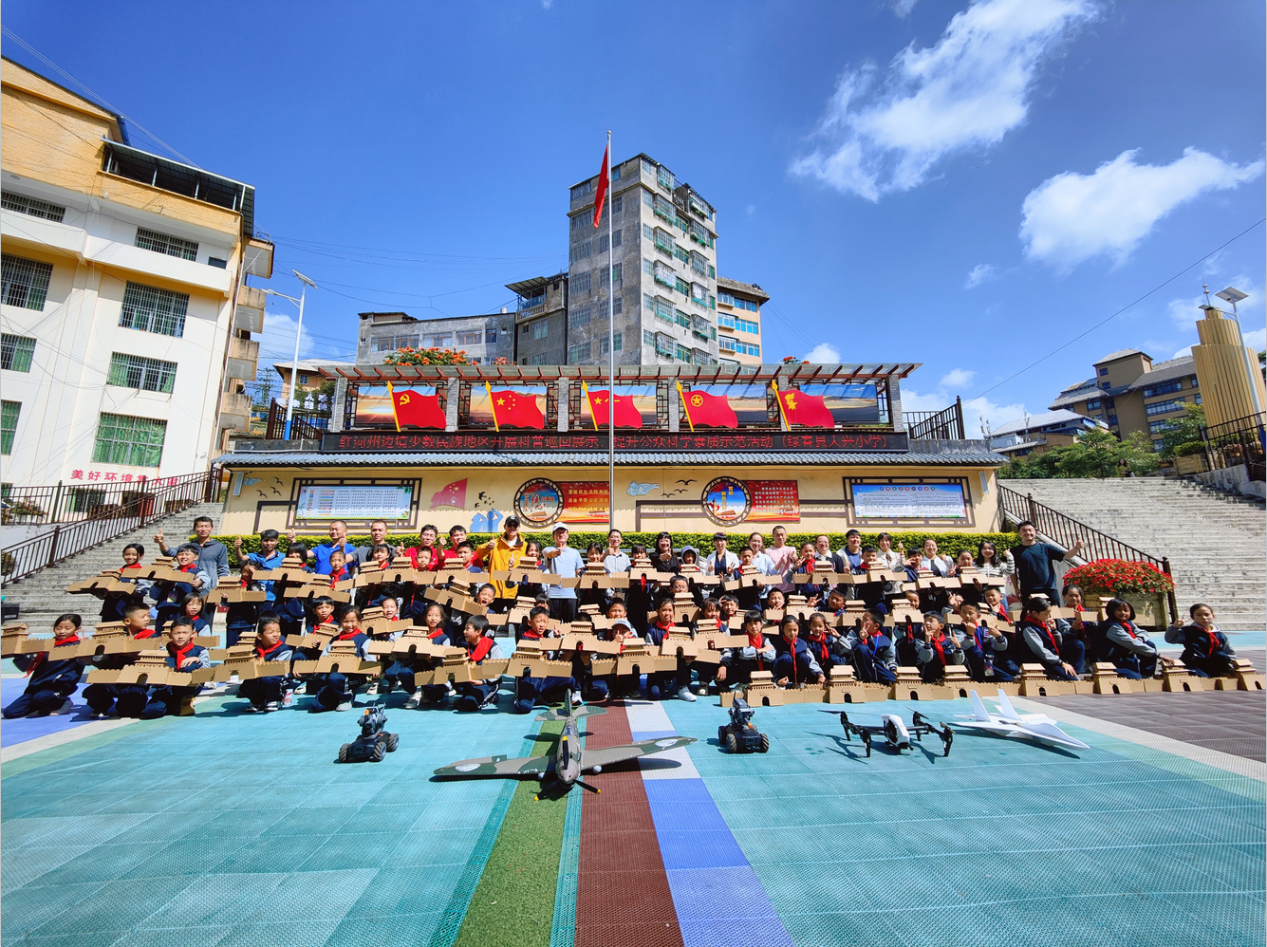 在云南师范大学附属河口国门小学、金平县第二小学、绿春县大兴小学的特色科普课堂上,孩子们兴致盎然地搭建古建教具、航天科普教具。孩子们巧手翻飞,不一会儿,一个个充满科学趣味的“国家保护文物——朝阳楼”和航空航天模型就呈现出来。看着自己的成果,孩子们脸上满是开心的笑容。