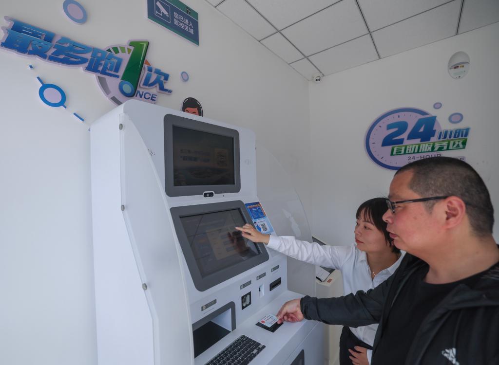 在广州市政务服务大厅,市民不用来回换证件,手持社保卡可以完成从入门刷卡、取号排队到综合受理、领取文件等全部操作,实现高效办事。