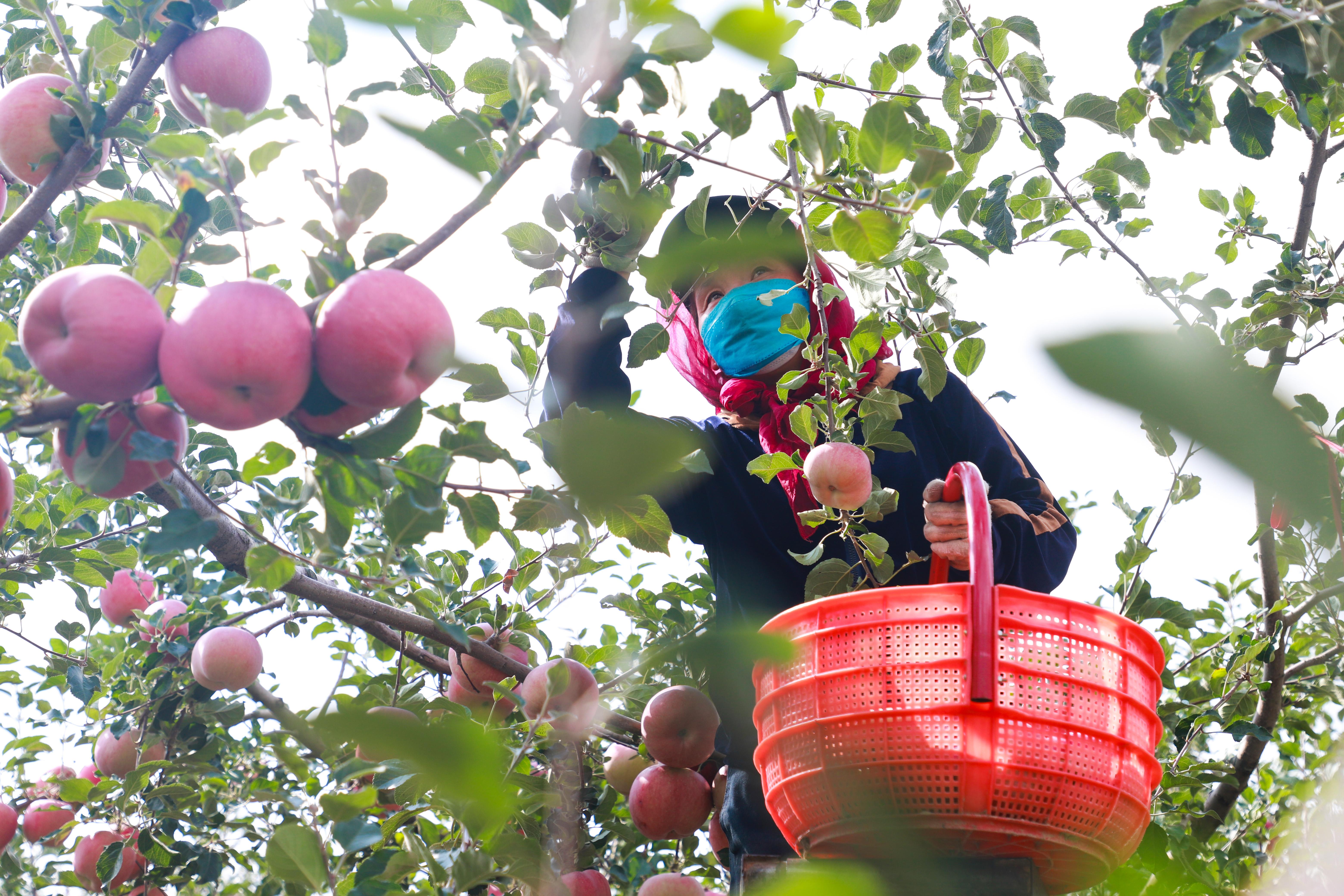 深秋时节,记者走进甘肃省通渭县鸡川镇永和村,只见漫山遍野的苹果树郁郁葱葱,红彤彤的苹果挂满枝头。果农们穿梭在果树间,小心翼翼地采摘。