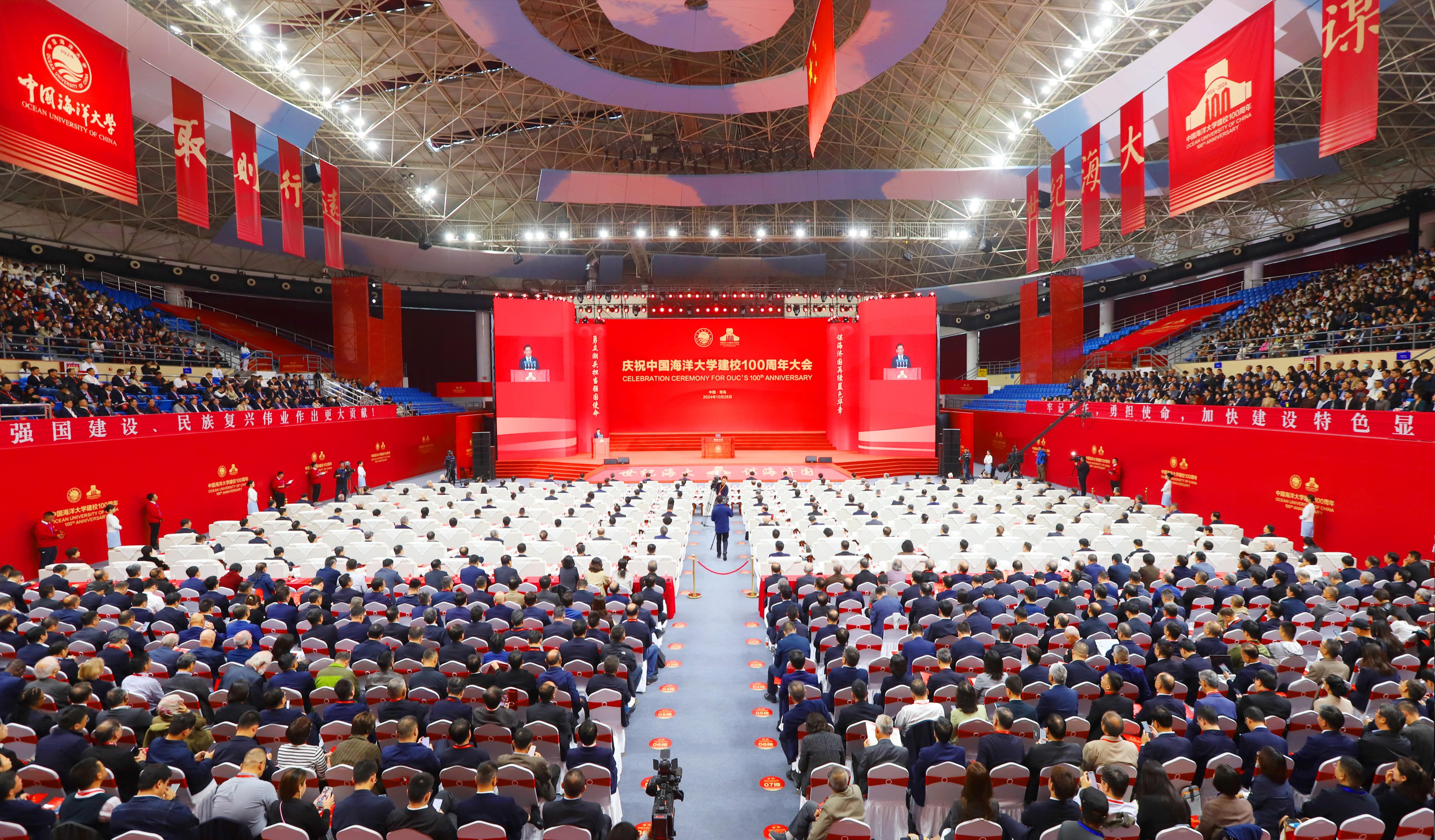 10月25日,庆祝中国海洋大学建校100周年大会在山东省青岛市举行。各界人士相聚线下线上,共同见证中国海洋大学百年荣光。